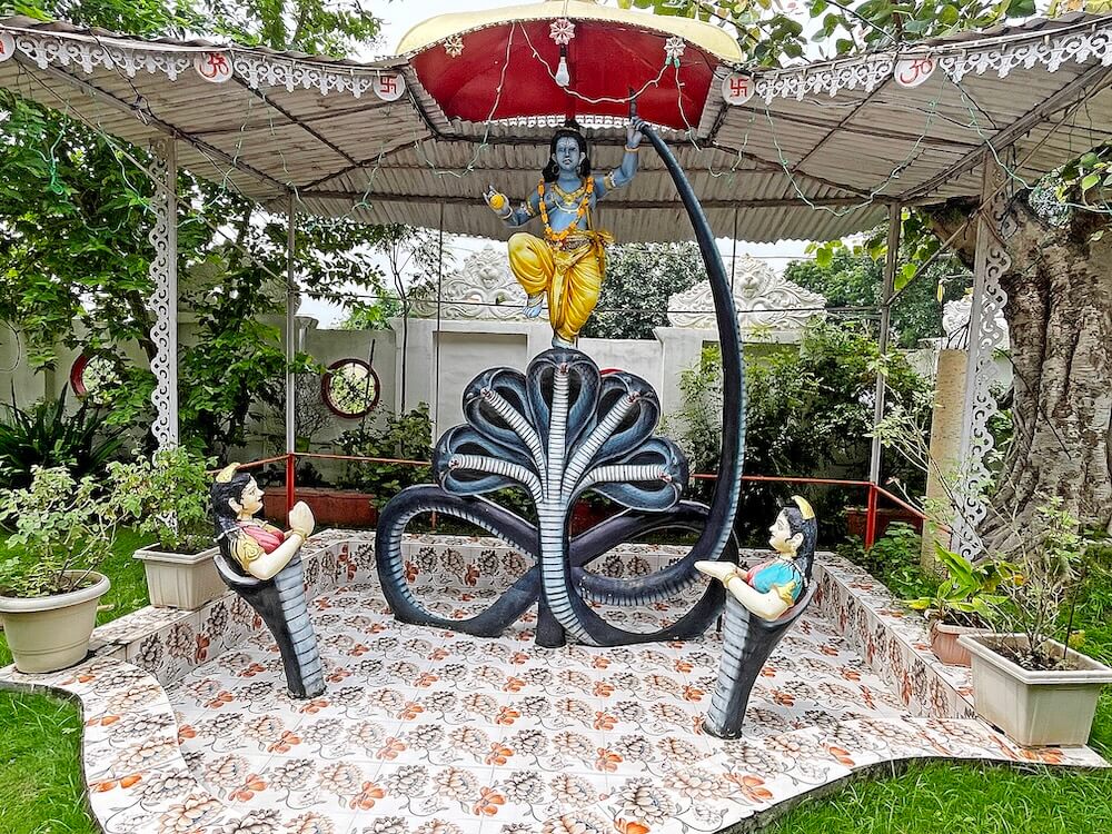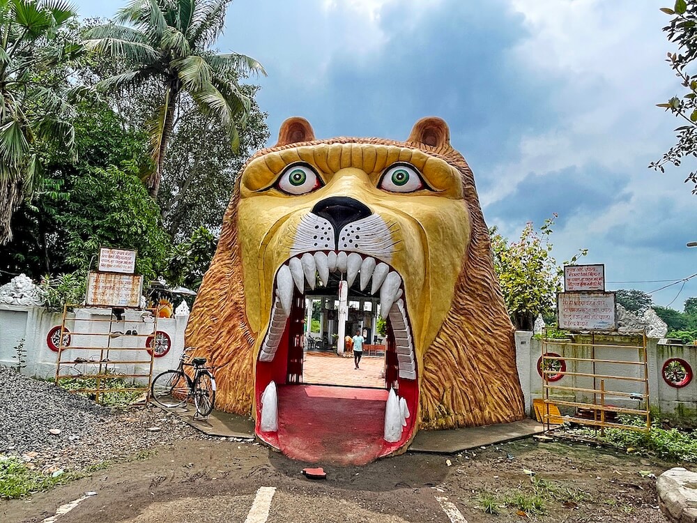 देवीचे येथील मंदिर पूर्वी छोटेखानी स्वरूपाचे होते. १९९९ मध्ये ग्रामस्थांनी या मंदिराचा जीर्णोद्धार केल्यानंतर त्यास सध्याचे स्वरूप प्राप्त झाले. मोर्णा नदीच्या काठावर वसलेल्या या मंदिराचा परिसर शांत व प्रसन्न आहे. मंदिराला चारही बाजूंनी आवारभिंत व त्या भिंतीत देवीचे वाहन सिंहाचा मुखवटा असलेले आकर्षक प्रवेशद्वार आहे. १८ फूट उंच व १३ फूट रुंद असलेले हे प्रवेशद्वार लोखंडी गज व सिमेंट काँक्रिटचा वापर करून उभारण्यात आले आहे. या प्रवेशद्वारातून मंदिराच्या प्रांगणात प्रवेश होतो. प्रांगणातील उद्यानात कालियामर्दन करणाऱ्या श्रीकृष्णाची सुंदर मूर्ती आहे. याशिवाय गणेश व कार्तिकेयासह शिव-पार्वतीची शिल्पे आहेत.