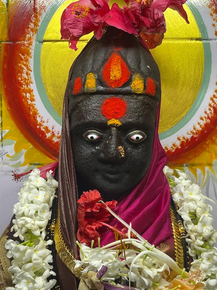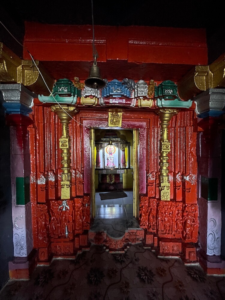 येथून पुढे अंतराळ आहे. अंतराळात दोन्ही बाजूला देवकोष्टके आहेत. येथील गर्भगृहाचे प्रवेशद्वार हा कोरीव नक्षीकामाचा एक उत्तम नमुना आहे. हे प्रवेशद्वार पंचशाखीय आहे. त्याच्या मध्यभागी सुंदर कोरीवकाम केलेली स्तंभशाखा आहे. स्तंभपाद भागामध्ये तत्कालीन रीतीनुसार द्वारपाल, द्वारसेविका, गंगा, यमुना यांची शिल्पे कोरलेली आहेत. या शिल्पांच्या खालच्या भागातही काही शिल्पे अस्पष्टशी दिसतात. द्वारमंडारकावरही नक्षीकाम केलेले आहे. ललाटबिंबस्थानी गणपती व उतरांगावरील शिखररचनेत हत्ती, सिंह, हंस आदी प्राण्यांची शिल्पे दिसतात. येथील उंचसर मंडारक ओलांडून मंदिराच्या गर्भगृहात प्रवेश होतो. या हेमाडपंती मंदिराच्या गर्भगृहातील भिंतींवर आणि जमिनीवर संगमरवरी फरशा बसवलेल्या आहेत. गर्भगृहाच्या मागील भिंतीस खेटून उंच अधिष्ठानावरील दगडी मखरामध्ये पार्वतीची काळ्या पाषाणातील उभी मूर्ती विराजमान आहे. मूर्ती वस्त्रालंकार आणि पुष्पमालांनी शृंगारली आहे. मूर्तीचे मुखमंडल हे शांत स्वरूपाचे आहे. मूर्तीस कवड्यांचे डोळे लावलेले आहेत. नाकात नथ व डोक्यावर मुकूट आहे. या मूर्तीची प्रतिष्ठापना ४ फेब्रुवारी १९७२ रोजी करण्यात आली. येथे मूर्तीच्या अधिष्ठानाचा वरचा मखराचा भाग जीर्णोद्धाराच्या वेळी नव्याने तयार करण्यात आला आहे; मात्र त्याच्या खालच्या भागात मूर्तीचे प्राचीन अधिष्ठान आजही दिसते. त्या भागात मधोमध दगडी देव्हाऱ्यासारख्या भागात एक शिल्प कोरलेले आहे. या शिल्पाची मोठी झीज झाली आहे. मात्र, पाय गुडघ्यात दुमडून बसलेल्या व्यक्तीचे हे शिल्प असल्याचे लक्षात येते. गर्भगृहाचा छताकडील भाग सुद्धा भौमितिक आकृत्यांनी घडविला आहे.