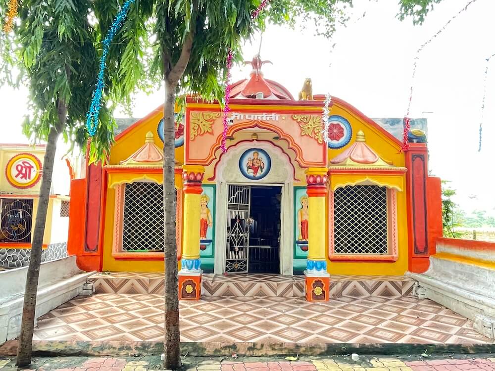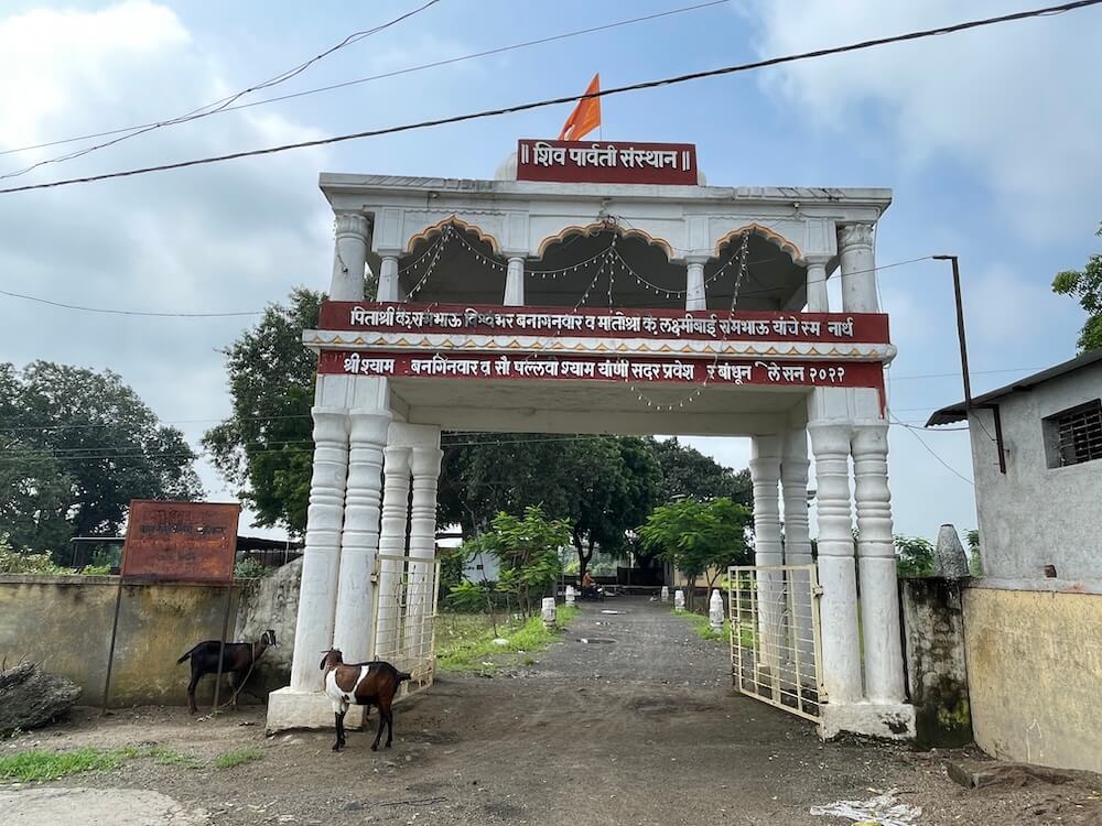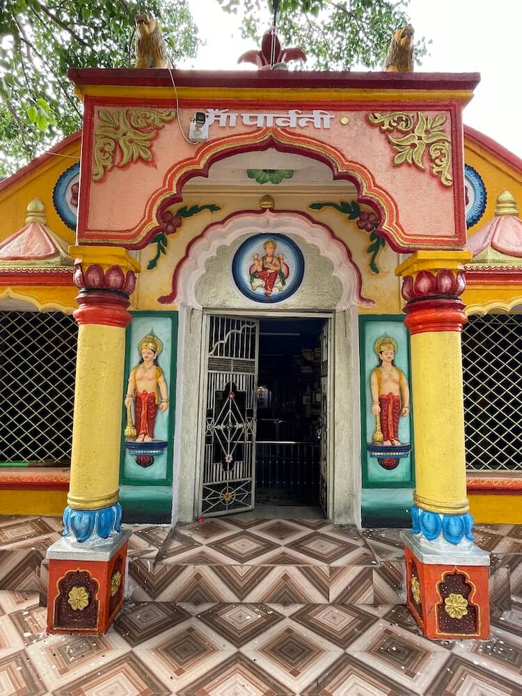 शिवमंदिराशेजारी असलेल्या पार्वतीमातेच्या मंदिराच्या समोरच्या भागात मोठी प्रवेशकमान बांधलेली आहे. कमानीवर दोन सिंहमूर्ती बसवलेल्या आहेत. मंदिराचे प्रवेशद्वार महिरपी कमान असलेले आहे. त्याच्या वरच्या भागात पार्वतीपुत्र गणेशाचे मोठे उठावशिल्प आहे. द्वारचौकटीच्या दोन्ही बाजूंस स्तंभांवर द्वारपालांच्या मूर्ती कोरलेल्या आहेत. प्रवेशद्वाराच्या दोन्ही बाजूला दोन मोठ्या खिडक्या आहेत. ही सर्व आधुनिक रचना आहे. येथून आत प्रवेश करताच मूळ प्राचीन मंदिराचा सभामंडप दिसतो. बाजूला दगडी भिंती, त्यांपासून काही अंतर सोडून मधोमध चार दगडी स्तंभांनी बनवलेला चौक अशी या सभामंडपाची रचना आहे. या स्तंभांची रचना स्तंभपाद, स्तंभदंड आणि स्तंभशीर्ष अशा तीन भागांत केलेली आहे. स्तंभपाद चौकोनाकार आहेत. त्यावर देवसेवक-सेविकांची शिल्पे, तसेच एके ठिकाणी गणेशाचे शिल्प कोरलेले आहे. या शिल्पांचा पेहराव लक्षणीय आहे. त्यांचा वरचा भाग अनावृत आहे, तर खाली अधोवस्त्र आहे. ते ‘अर्धोरूक’ म्हणजे आखूड धोतर आहे. हा सातवाहनकालीन पेहरावाचा लोकप्रिय प्रकार होय. यात अर्धोरूकाच्या पायघोळ निऱ्या पुढे सोडलेल्या आहेत. त्यास हस्तीशुंडक पद्धत म्हणतात.