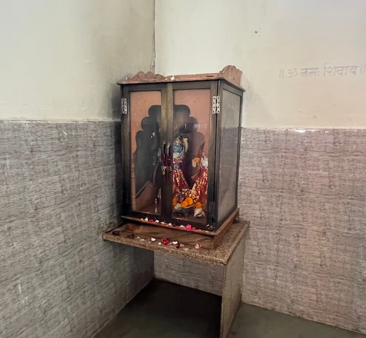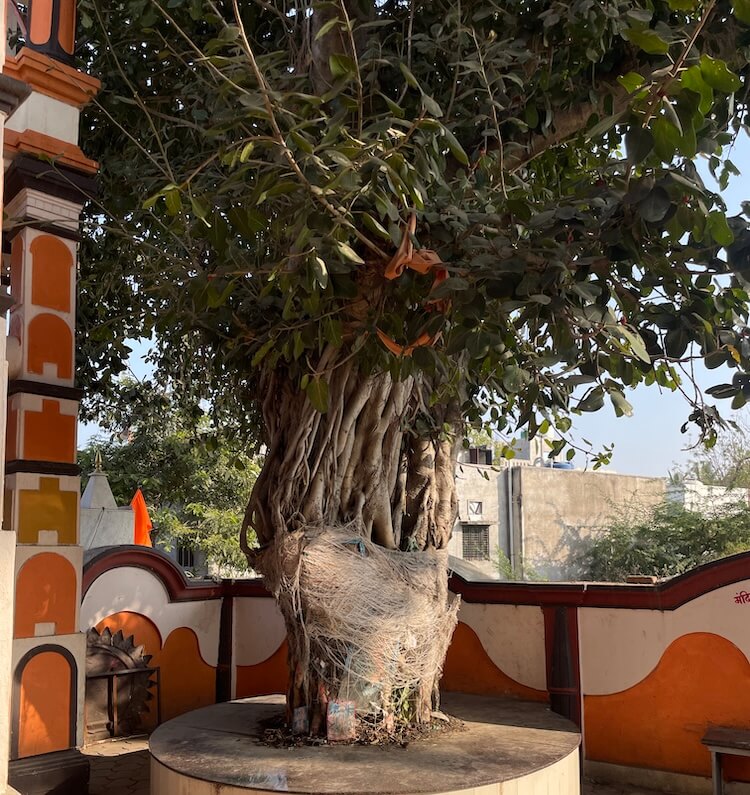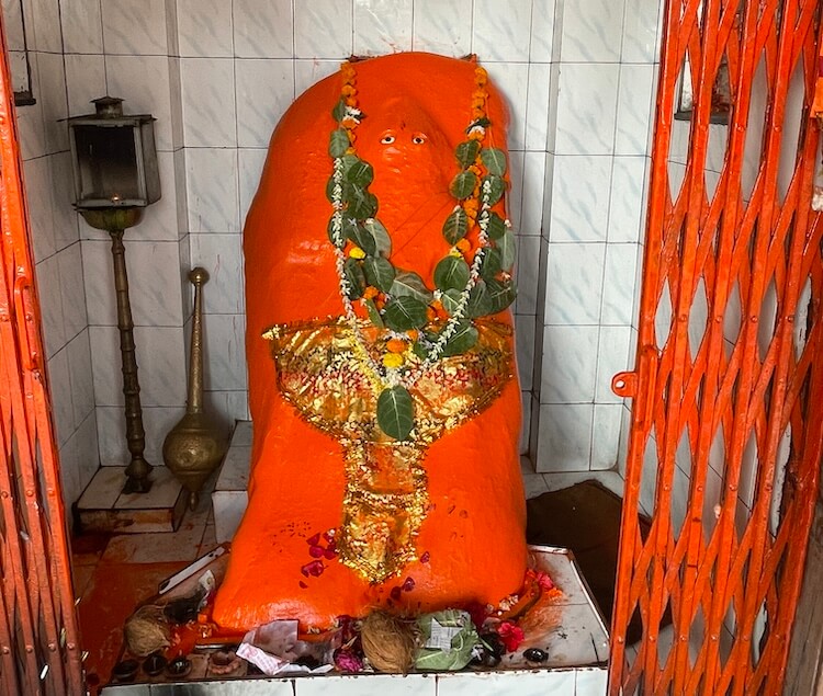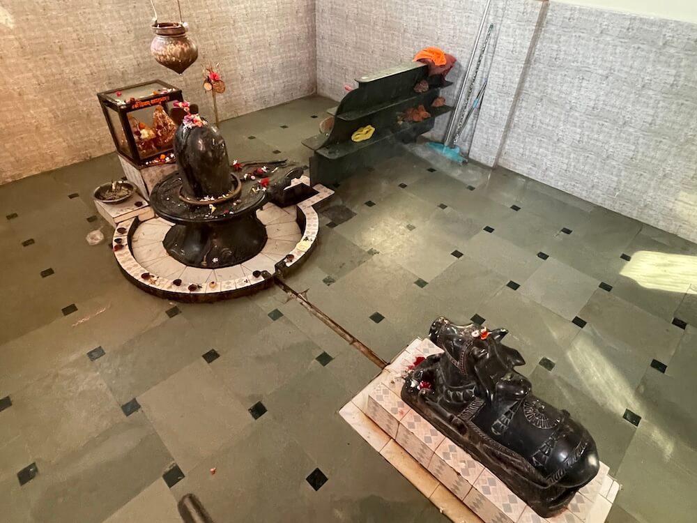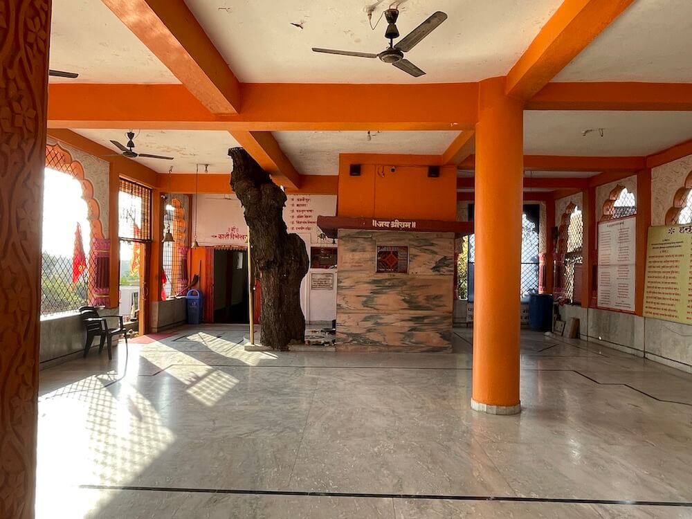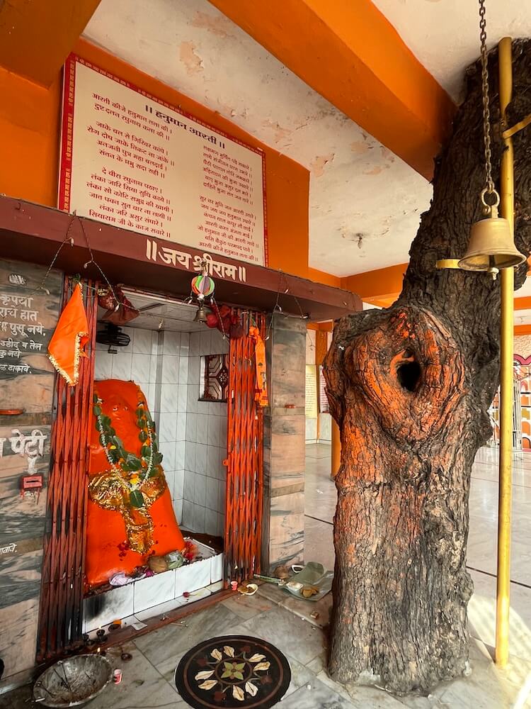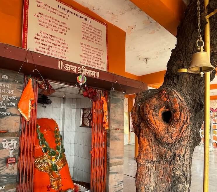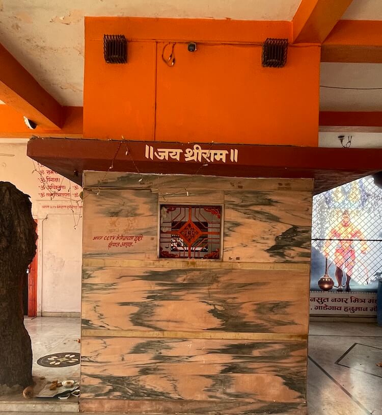 सभामंडपाला महिरपी आकाराचे प्रवेशद्वार आहे. याच सभामंडपात एक प्राचीन वृक्ष आहे. मंदिराच्या जीर्णोद्धारातही हा वृक्ष तसाच ठेवून बाजूने बांधकाम करण्यात आले आहे. या वृक्षाजवळ असलेल्या छोटेखानी गर्भगृहात हनुमानाची शेंदूरचर्चित मूर्ती आहे. या मूर्तीवर डोळे कोरले आहेत. मूर्तीच्या डाव्या बाजूला गदा आहे. असे सांगितले जाते की पूर्वी या झाडाला लागून ही मूर्ती होती. त्यानंतर मंदिर बांधल्यावर या मूर्तीची गर्भगृहात प्रतिष्ठापना करण्यात आली. या मंदिरातील अन्य एका गर्भगृहात काशी विश्वेश्वराची पिंडी आहे. काळ्या संगमरवरातील या पिंडीवर लंबगोलाकार शिवलिंग आहे. शिवलिंगासमोरील छोट्या चौथऱ्यावर नंदीची मूर्ती आहे. मंदिराच्या गर्भगृहावर उंच, सुंदर शिखर आहे.