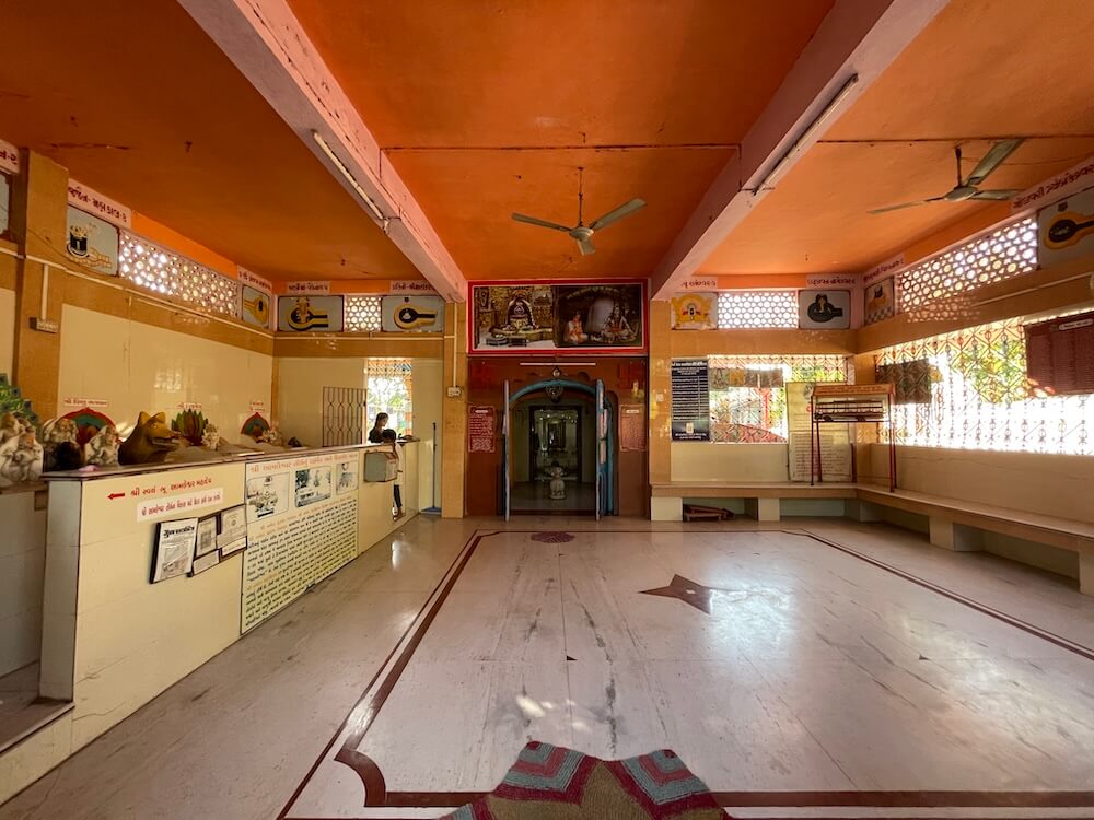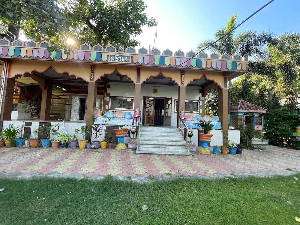 Erected in 2012, this temple stands upon a high pedestal. Entrance to the temple porch is gained by ascending six steps, flanked by lion murtis and sculptures of dwarpals (gatekeepers). The niches within the assembly hall house murtis of Sai Baba, Mother Narmada, Mahalakshmi, Umiya Mata, Ambaji Mata,