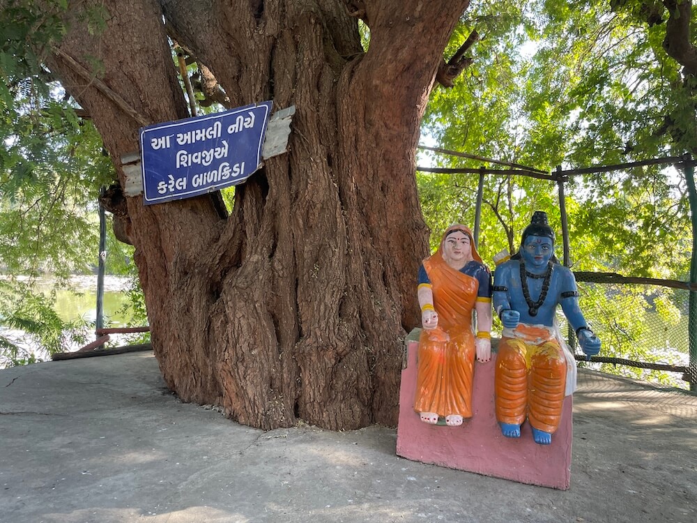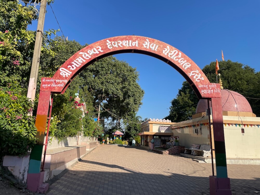 In the village of Amaleshwar, in Bharuch taluka, stands the sacred abode of Mahadev, manifested in the form of a swayambhu Shivalinga (self-manifested sacred symbol of Shiva) beneath a tamarind tree. In Gujarati, the tamarind fruit is called ‘aamli’ and thus the Lord who revealed Himself here came to be revered as Amaleshwar Mahadev. In time, the village too came to be known by the same sanctified name. This tirtha (holy pilgrimage site) finds mention in the ‘Narmada Puran’. It is nestled in a delightful setting on the banks of an expansive lake. As Lord Shri Rama was a profound devotee of Shiva, various tableaux depicting episodes from the Ramayana have been erected near this temple. On the occasion of Mahashivaratri, a sacred tradition is observed here of fashioning a Shivalinga out of pure clarified butter (ghee).