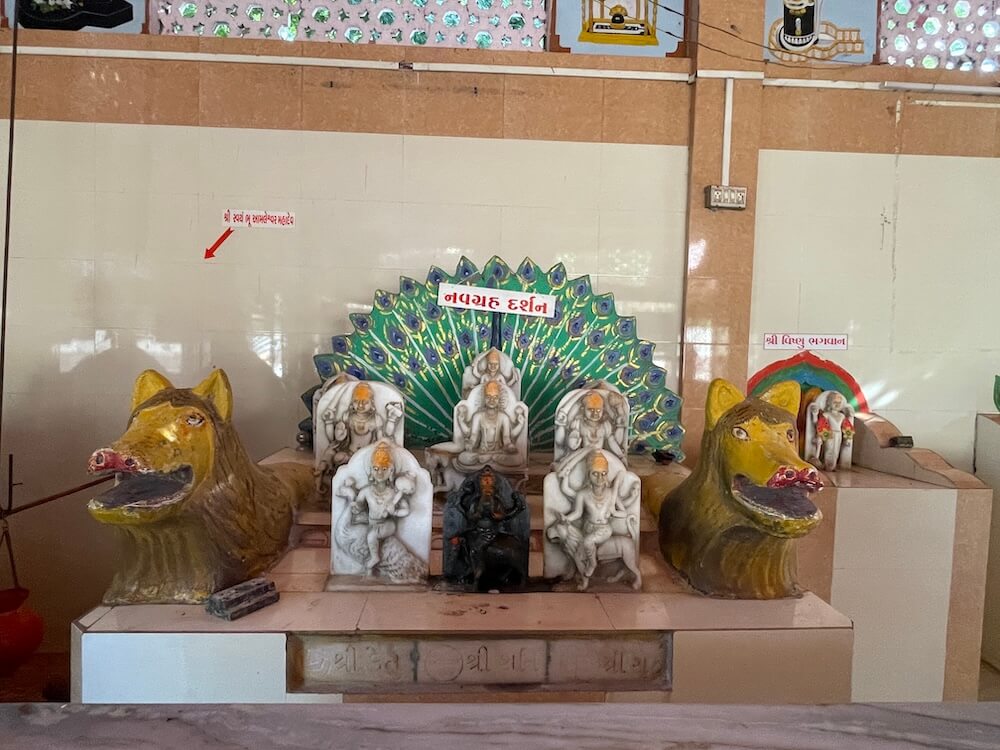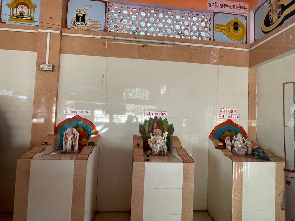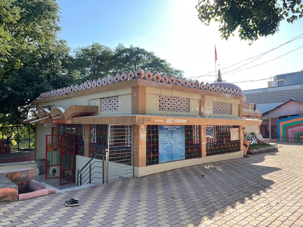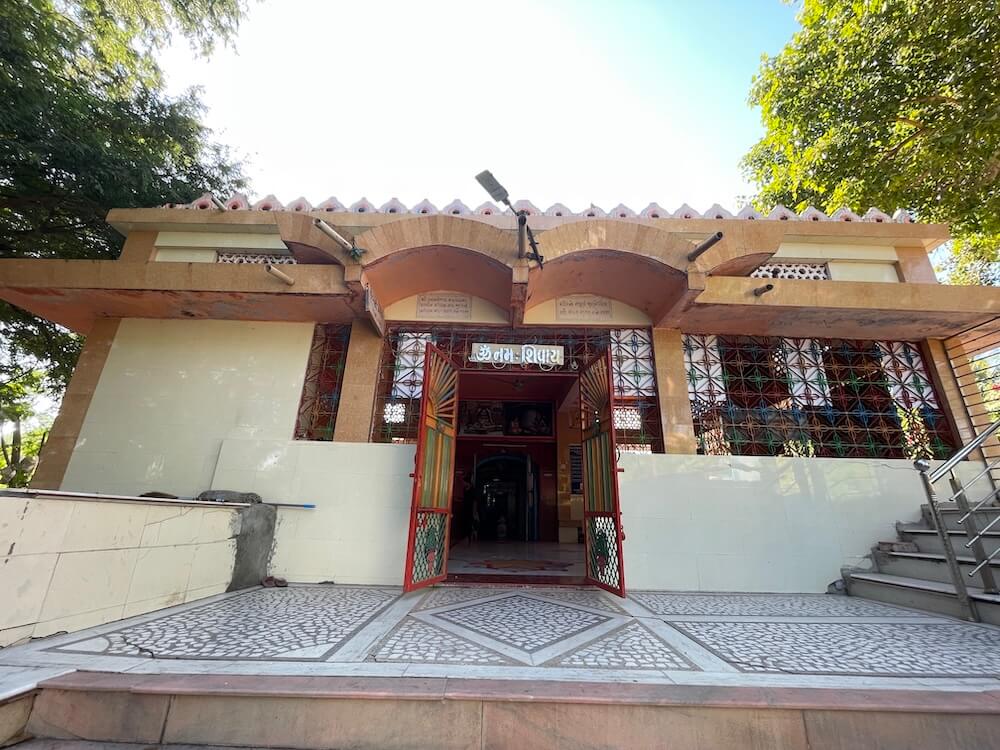 Erected in 2012, this temple stands upon a high pedestal. Entrance to the temple porch is gained by ascending six steps, flanked by lion murtis and sculptures of dwarpals (gatekeepers). The niches within the assembly hall house murtis of Sai Baba, Mother Narmada, Mahalakshmi, Umiya Mata, Ambaji Mata,