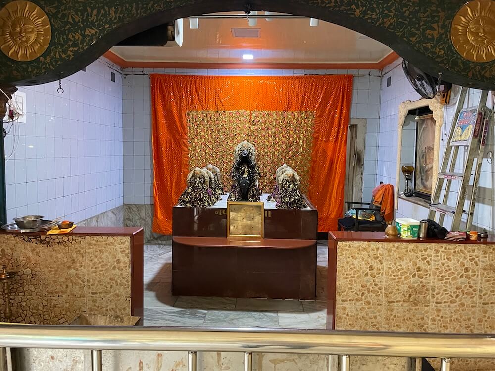 Within the sanctum, the central focus is a small Shiva Lingam housed in a shalunka (base) made of panchadhatu (five-metal alloy). Around this base, the mantra ‘Om Namah Shivaya’ and auspicious symbols are inscribed. A cobra, carved in stone, is seen coiled protectively around the lingam. On the rear wall of the sanctum, a niche houses the idol of Goddess Parvati. Also within the temple premises are shrines dedicated to Goddess Kali and Lord Dattatreya.