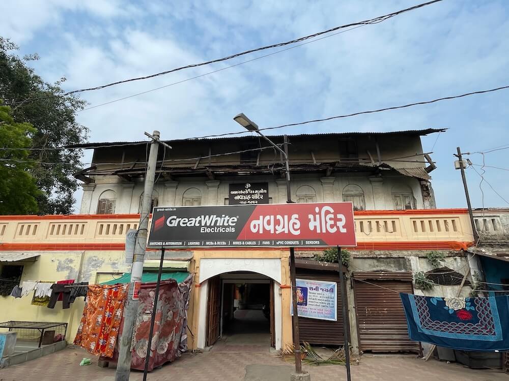 To ensure a favorable alignment of these planets in one’s horoscope, sacred texts prescribe rituals known as Navagrah Shanti Pooja. In this type of astrological worship, it is customary to offer prayers to symbolic idols of the planets. Saturn, in particular, is known for his fierce and punitive nature and hence, temples dedicated solely to Saturn are found in many parts of India. Likewise, there are individual and collective shrines for other celestial bodies. The Navgrah temple in Vadodara, established in 1892, holds the distinction of being Gujarat’s only standalone temple dedicated to all nine planets together. These idols of Saturn, Rahu, Ketu, Jupiter, Venus, Mercury, Mars, Moon and Sun are installed facing west on a common platform.