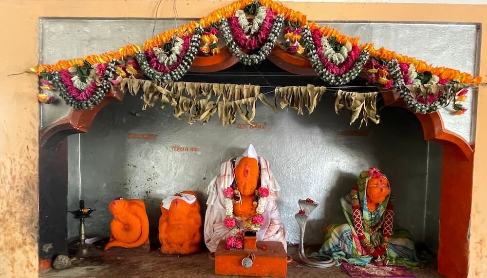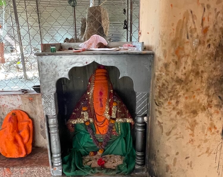 एकदा परकियांचे आक्रमण होणार असल्याची माहिती मिळाल्यामुळे ग्रामस्थांनी येथील सोन्याची मूर्ती वाचवण्यासाठी आपल्याकडील दगड-विटांनी ही मूर्ती येथे झाकली. या दगड-विटांमुळे ही टेकडी तयार झाली. या टेकडीच्या शिखरावर कालिका मातेचे छोटे स्थान आहे. या टेकडीच्या आत आणखी एक प्राचीन मंदिर असावे, असेही भाविकांचे म्हणणे आहे.