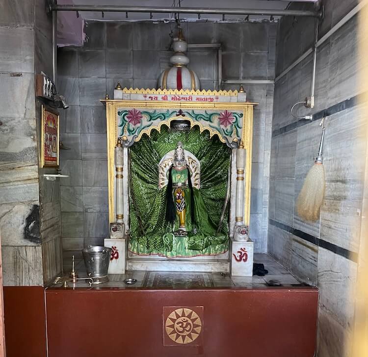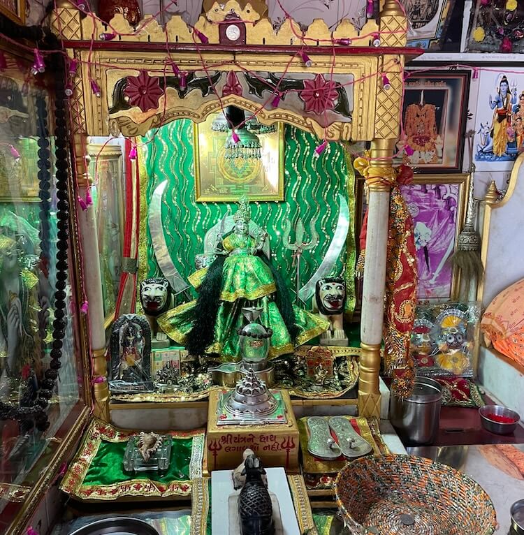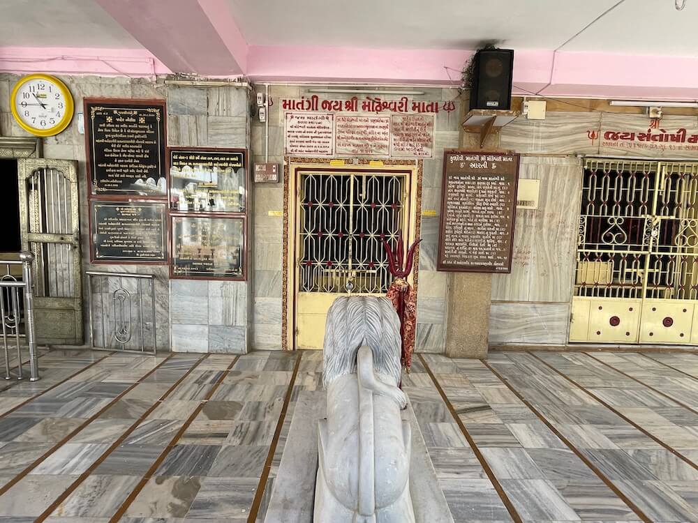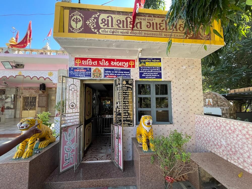 To the left of the temple courtyard is the ‘Shakti Gadipith’. Constructed on 30 March 2005, this small structure houses a silver idol of Ambaji Mata seated on a lion within a marble shrine on a high pedestal.