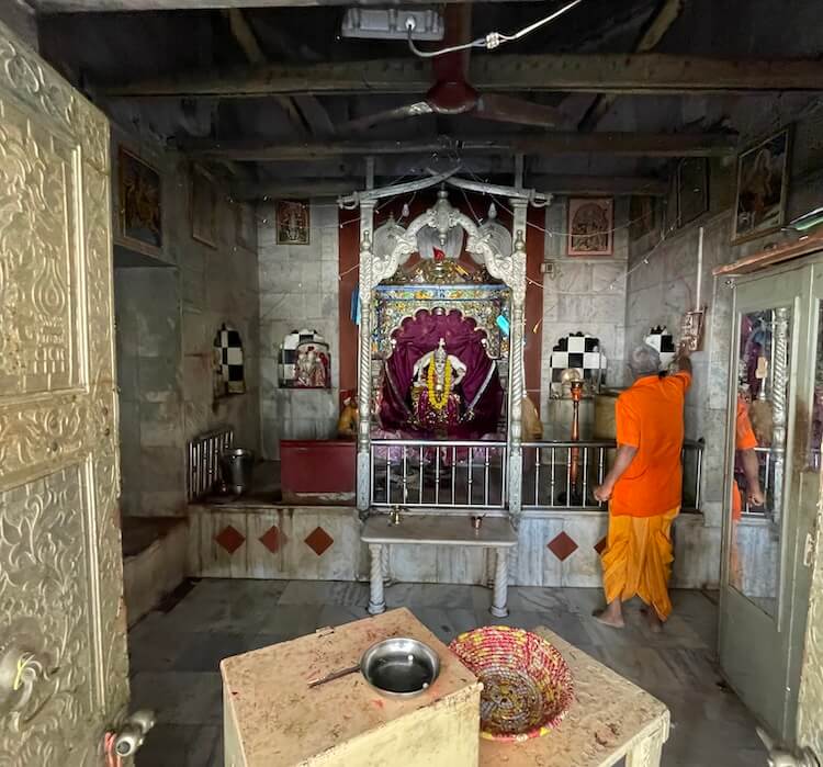 Large swords and lion sculptures flank the idol. Before the deity lie a silver Shivling, Padukas (sacred footwear), a conch and a Nandi sculpture. A silver ‘Shri Yantra’ is also present here. It was consecrated on 26 May 2024. Furthermore, this ‘Shakti Gadipith’ preserves an ancient manuscript copy of the Bhagavad Gita, which is said to date back to the 1st century AD.