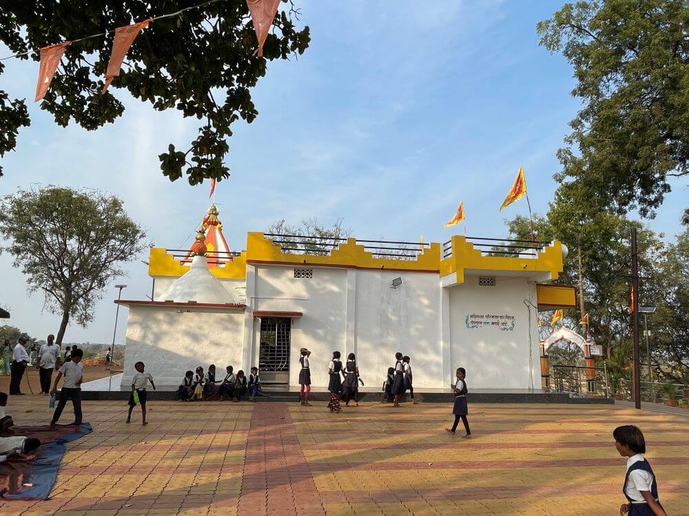 यह मंदिर सिंदेवाही से सावली जाने वाले मार्ग पर स्थित है। इस मार्ग से सटे विशाल मैदान में देवी के सभी उत्सव मनाए जाते हैं। यहाँ पूजन सामग्री की अनेक दुकानें हैं। मंदिर तक पहुँचने के लिए ४०-४५ सीढ़ियाँ चढ़नी पड़ती हैं। इन सीढ़ियों के पश्चात् मंदिर के मुख्य प्रवेशद्वार से प्रांगण में प्रवेश होता है। प्रांगण विशाल है तथा चारों ओर फर्श लगाया गया है। ऊँचाई पर होने के कारण किनारों पर रेलिंग भी लगाई गई है। मुख्य मंदिर मध्यम आकार का है, जिसकी संरचना में एक सभामंडप और तीन छोटे गर्भगृह सम्मिलित हैं। इनमें से देवी का गर्भगृह ही मूल मंदिर है, जबकि सभामंडप बाद का निर्माण प्रतीत होता है।
