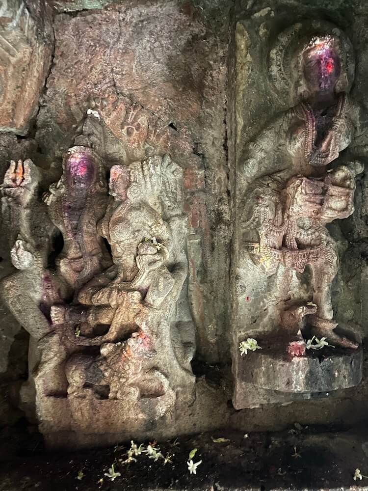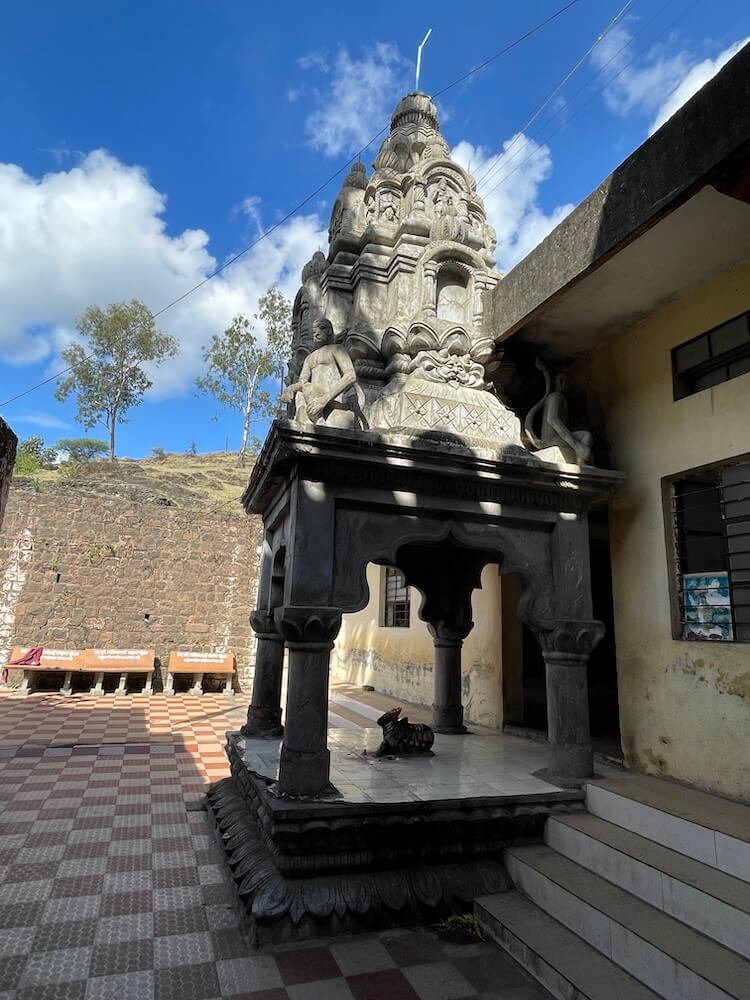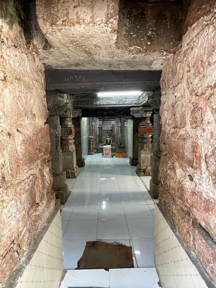 सभामंडपापुढे अरुंद अंतराळ आहे. अंतराळात वज्रपीठावर कासव शिल्प आहे. अंतराळाच्या पुढे असलेल्या गर्भगृहाचे प्रवेशद्वार पंचशाखीय आहे. त्याच्या खालील बाजूस द्वारपाल, द्वारपालिका, गंगा, जमुना शिल्पे आहेत. प्रवेशद्वारास पुष्पशाखा, पर्णशाखा, वेलबुट्टीशाखा व स्तंभशाखा आहेत. ललाटबिंबावर गणपती शिल्प आहे. मंडारकास चंद्रशिला आहे व त्यावर कीर्तीमुख आहे. गर्भगृहात जमिनीवर मध्यभागी स्वयंभू शिवपिंडी आहे. शिवपिंडीवर छत्र धरलेला पितळी नाग आहे,