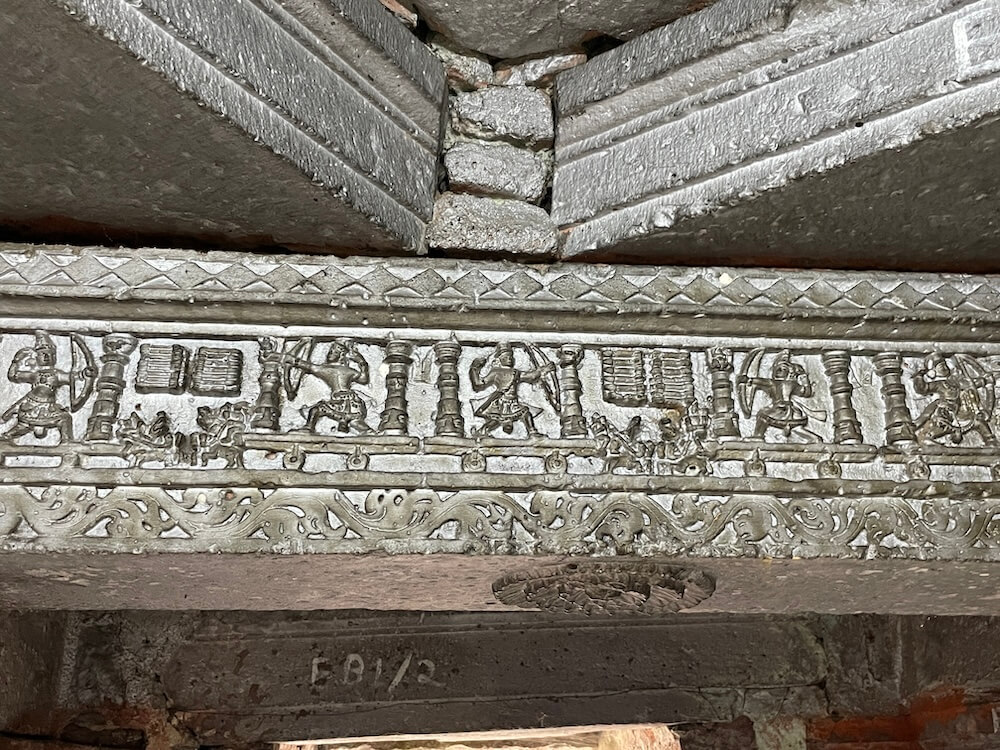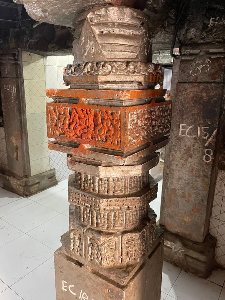 तर जलधारा धरलेले तांब्याचे अभिषेक पात्र छताला टांगलेले आहे.