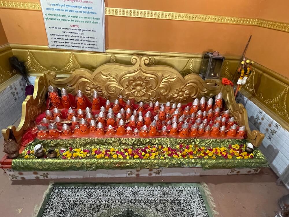 मातेच्या आज्ञेचे पालन करत, नवरात्रोत्सवाच्या पावन पर्वावर या ६४ योगिनी शेंदरी बाणरूपाने या पवित्र मातीत प्रकटल्या. त्यांच्या दैवी तेजाने येथील नकारात्मक शक्तींचे निर्दालन झाले आणि हा परिसर सुरक्षित झाला. योगिनींसोबत आलेल्या त्या गायीचे येथे कायमस्वरूपी वास्तव्य झाले. त्यामुळेच पुढे या गावाला ‘गायगाव’ असे नाव प्राप्त झाल्याचे सांगितले जाते.