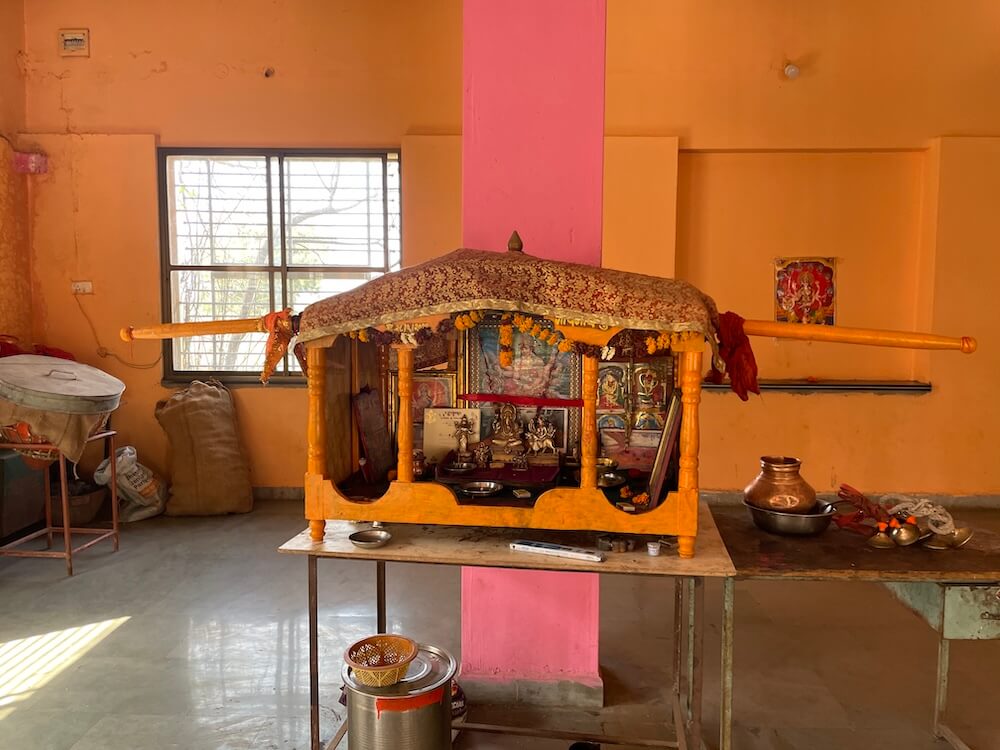 या पूर्वाभिमुख मंदिराच्या गर्भगृहावर वरच्या बाजूने निमुळते होत जाणारे चौकोनी शिखर आहे, ज्यावर लहान लहान शिखरांच्या प्रतिकृती आहेत. शिखऱ्यावर दोन आमलक आहेत आणि त्यावर कळस आहे.
