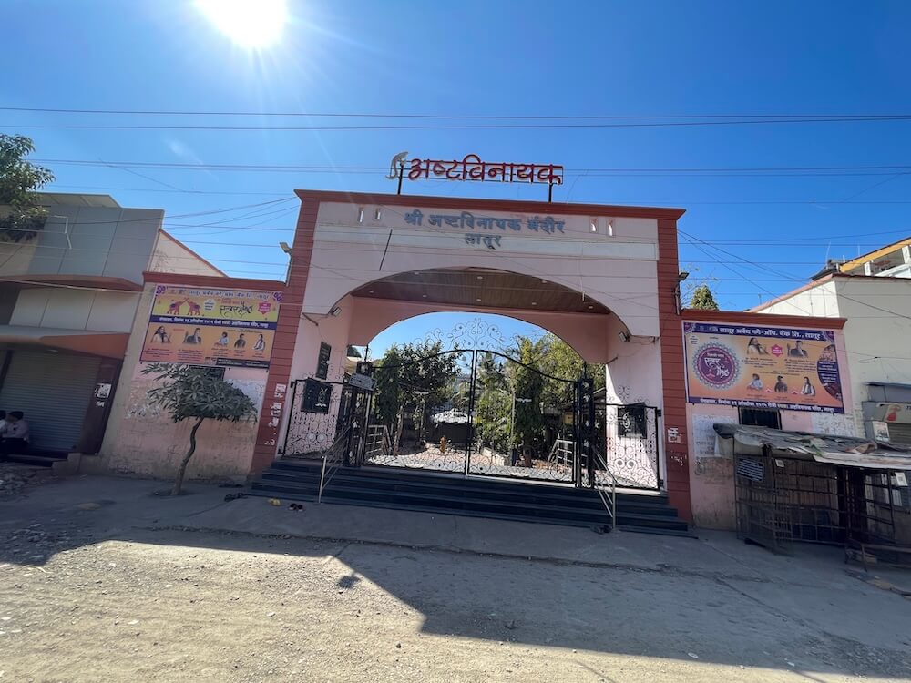 लातूर शहरातील या अष्टविनायक मंदिराची निर्मिती १९८९ मध्ये करण्यात आली होती. हे स्थान अतिशय रमणीय आहे. येथे मुख्य अष्टविनायक मंदिराच्या अगदी समोरच छोट्या गुंफा आणि दगडी मूर्तींचा आभास निर्माण करणारा कृत्रिम पर्वत उभारण्यात आला आहे. या पर्वताच्या समोरच शंकराची सुमारे दहा फूट उंच मूर्ती आहे. त्रिशूळ आणि जटाधारी असे त्या शंकराचे रूप आहे. या मूर्तीच्या समोर एक शिवपिंडीही आहे. या शिवपिंडीसमोर एका चौथऱ्यावर एकमेकांच्या पाठीला पाठ असणाऱ्या दोन मूर्ती आहेत. त्यातील एक नंदीची आणि दुसरी मूषकाची आहे. नंदीचे तोंड शंकराच्या दिशेला आहे, तर मूषकाची दिशा गणपती मंदिराच्या दिशेला आहे. गणपती मंदिराची रचना अष्टकोनी आहे. आत उंच वज्रपीठावर चांदीच्या सुंदर महिरपीत गणपतीची संगमरवरी मूर्ती स्थापित आहे. या मूर्तीच्या भोवतीने असलेल्या देवकोष्टकांत मयूरेश्वर, सिद्धिविनायक, बल्लाळेश्वर, वरदविनायक, चिंतामणी, गिरिजात्मज, विघ्नेश्वर आणि महागणपती यांची प्रतिष्ठापना करण्यात आली आहे. मंदिराच्या सभोवताली सुंदर आणि सुशोभित बाग आहे. मंदिर परिसरात विठ्ठल रखुमाई आणि नवग्रह मंदिरही आहे. मंदिर परिसरात इतरही अनेक देवतांच्या मूर्ती आहेत. येथे गोसेवेचा प्रचार करणारे पुतळेही आहेत.