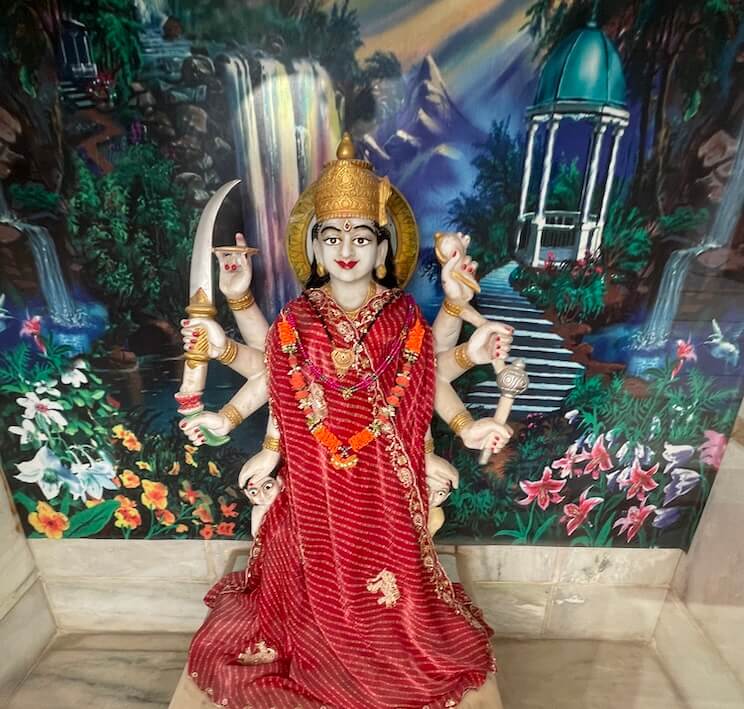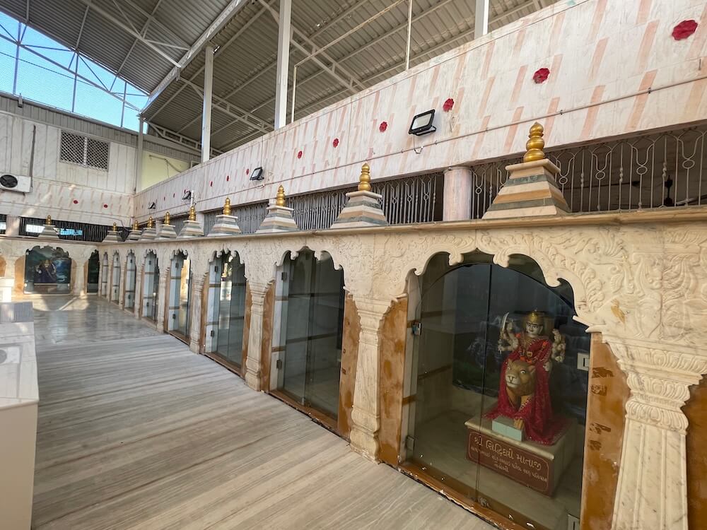 The layout of various small shrines adjacent to the fortified walls in the vast temple courtyard is executed in an extremely disciplined manner. This includes sacred idols of Ganesh, Gayatri Mata and Dattatreya, along with independent temples of Satyanarayan, Sai Baba and Santoshi Mata arranged in a single row. Within the row of smaller shrines, the idols of the ‘Navadurga’ (Shailputri, Brahmacharini, Chandraghanta, Kushmanda, Skandamata, Katyayani, Kaalratri, Mahagauri and Siddhidatri) capture the attention of devotees. Along with these small shrines, one can have Darshan (sacred viewing) of idols from various ‘Shaktipithas’ such as Khodiyar Mata, Ashapura Mata, Kukadavari Devi, Dashamata, Jivantika Devi, Punia Devi and Vaishno Devi.
