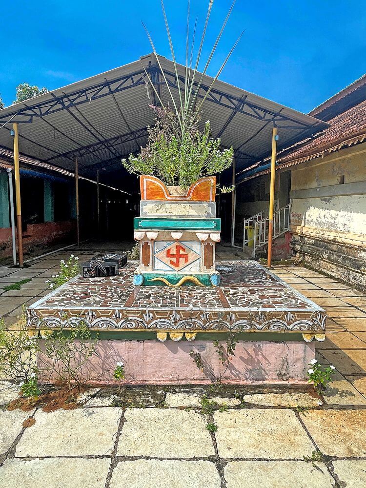 मंदिराबाहेर, सभामंडपाच्या उजव्या बाजूस लांबलचक ओवरी आहे. त्यात देव गायगरब, गांगो, चिटक्याचा चाळा, देवी अनभवणी यांची पाषाणे, तसेच मूर्ती आहेत. मंदिराच्या डावीकडे एका ओवरीत देवी भावयचे स्थान आहे. या देवीच्या कोरीव पाषाणाच्या मागे काही वीरगळ व सतीशिळा आहेत. यातील काही वीरगळ व सतीशिळांवरील उठावशिल्पे झिजलेली आहेत. मात्र काही सतीशिळा अजूनही शाबूत आहेत. मंदिर आवारात ब्राह्मणदेवाचे मंदिरही आहे व येथील गर्भगृहात शिवलिंग प्रतिष्ठापित केलेले आहे.