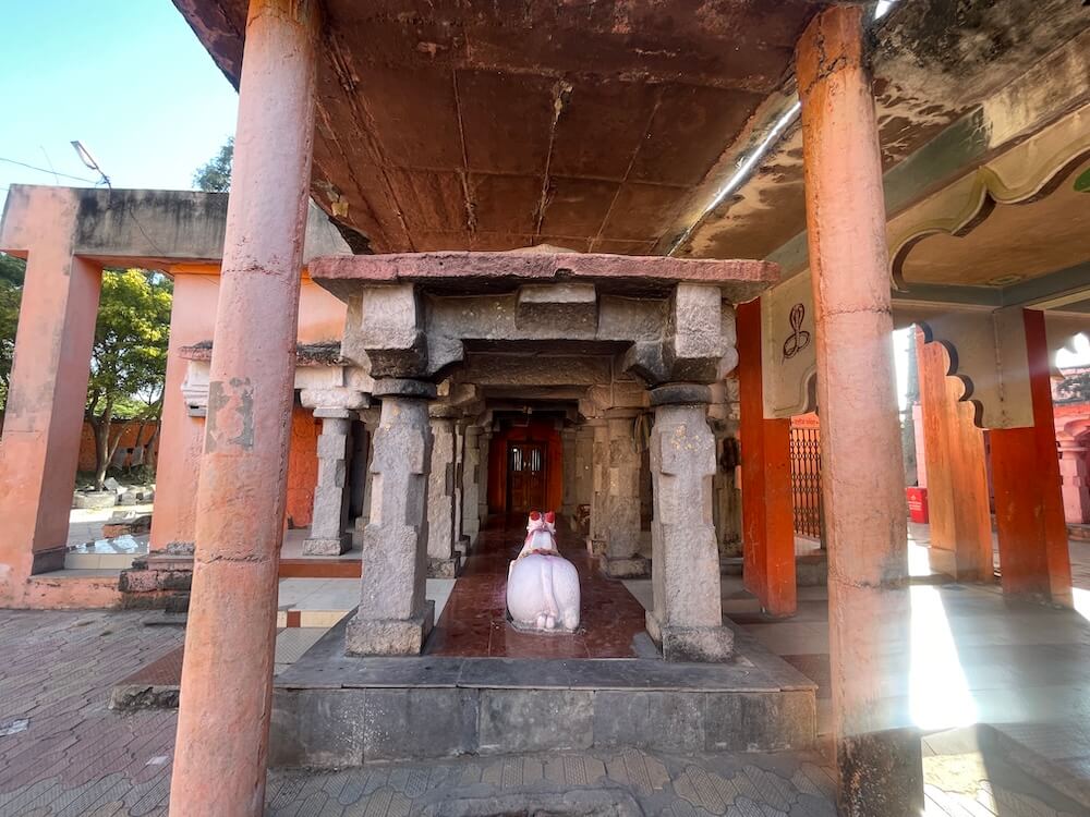 मंदिराच्या बाह्य बाजूने प्रदक्षिणा मार्ग आहे. मंदिराच्या बाजूला इतर देवी-देवतांची लहान मंदिरे, काही प्राचीन शिल्पे व शिवपिंडी आहेत. प्रांगणात असलेल्या प्राचीन शिलालेखाच्या शीर्षभागी सूर्य व चंद्र कोरलेले आहेत. अभ्यासकांच्या मते हे दानपत्र असावे. मंदिराच्या तटबंदीत प्रवेशद्वाराच्या उजव्या बाजूला रथकक्ष आहे, ज्यात उत्सवकाळात वापरला जाणारा लाकडी रथ ठेवला जातो.