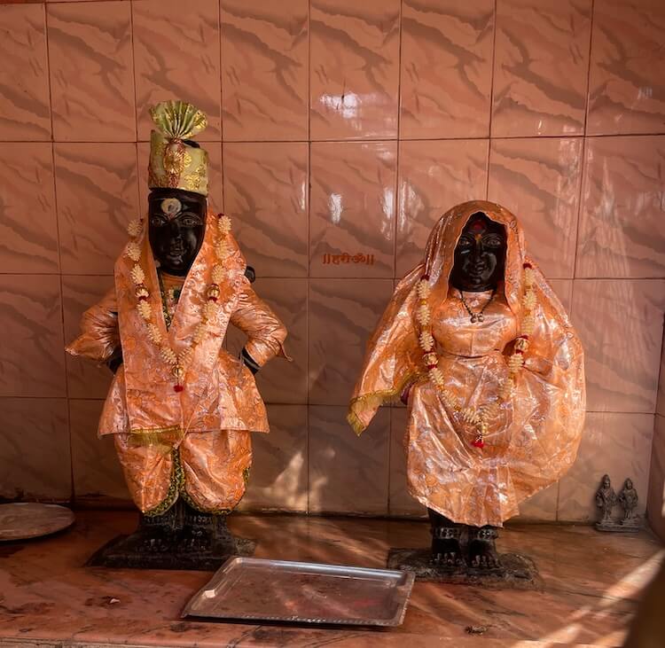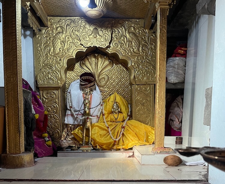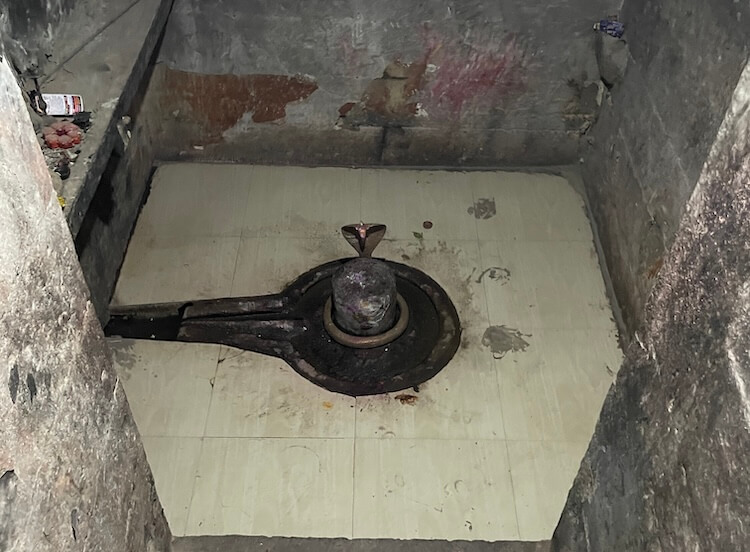 गर्भगृहात जमिनीवर मध्यभागी शिवपिंडी व त्यावर छत्र धरलेला पितळी नाग आहे.