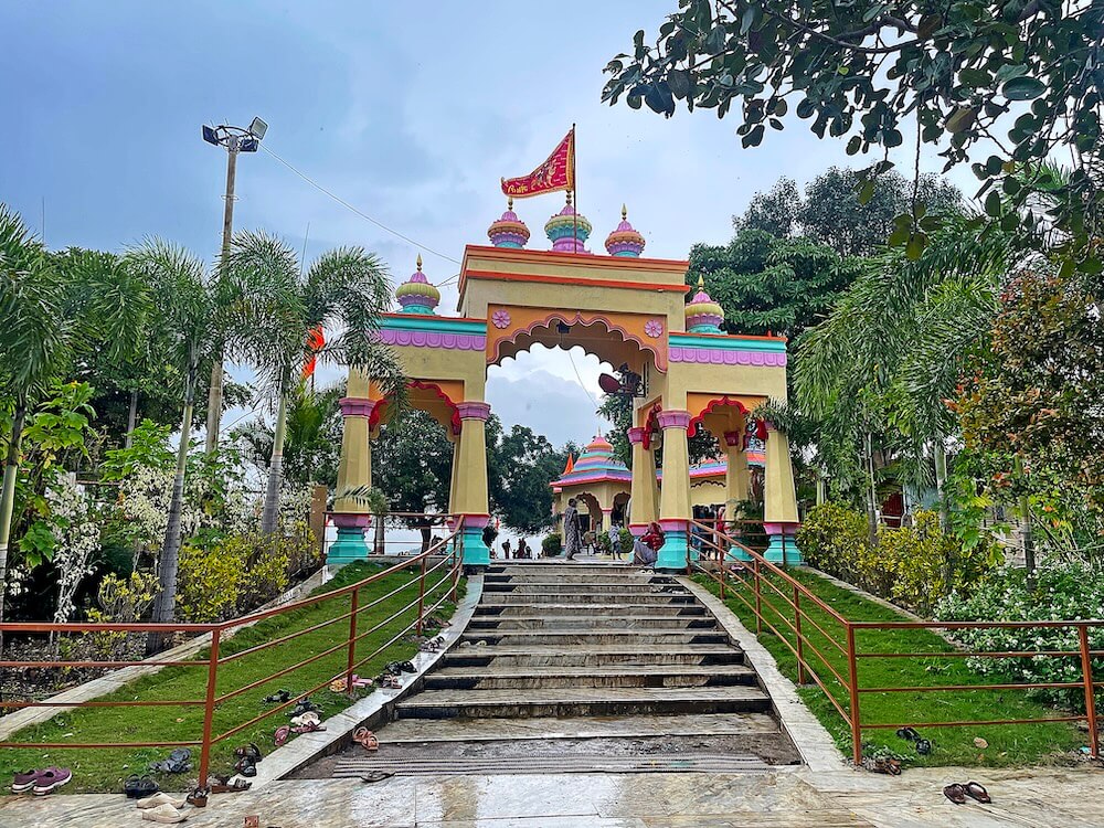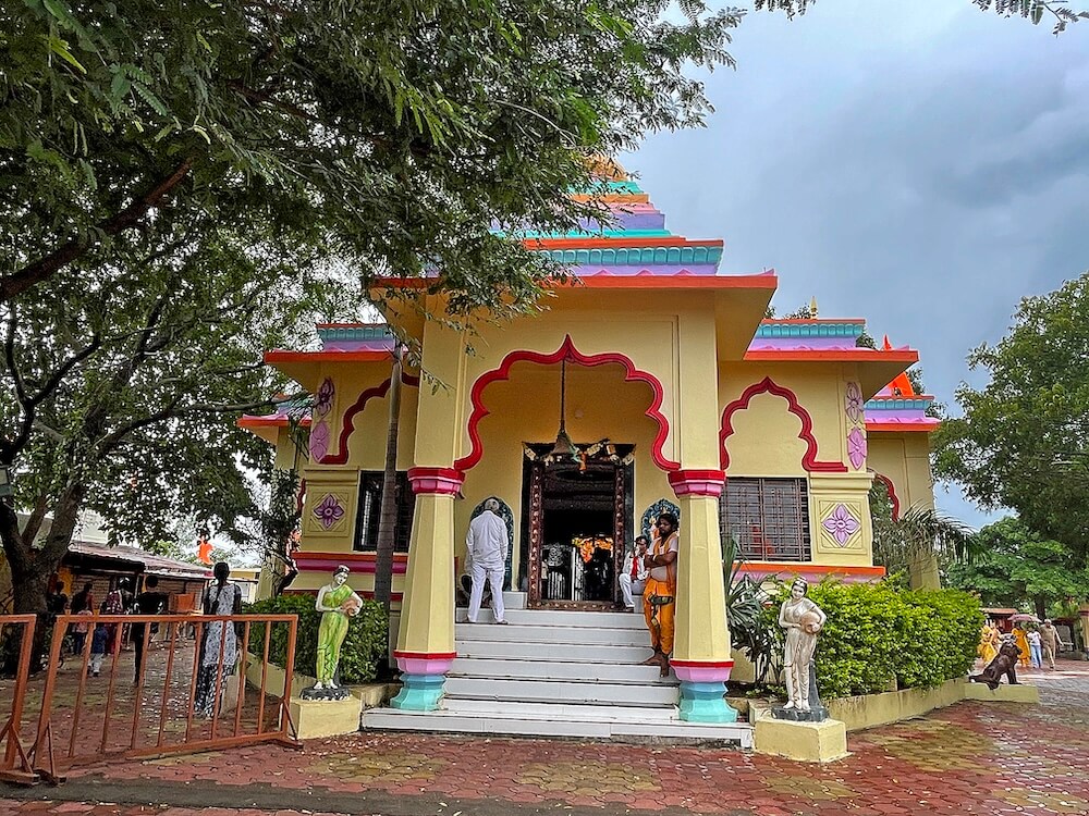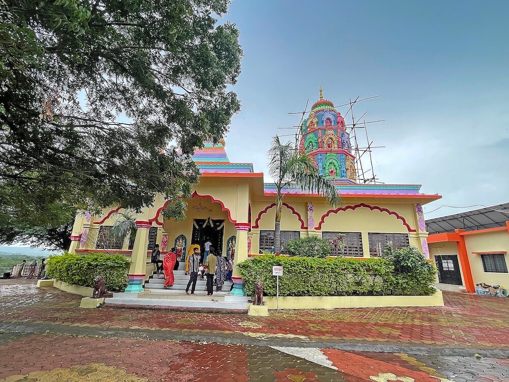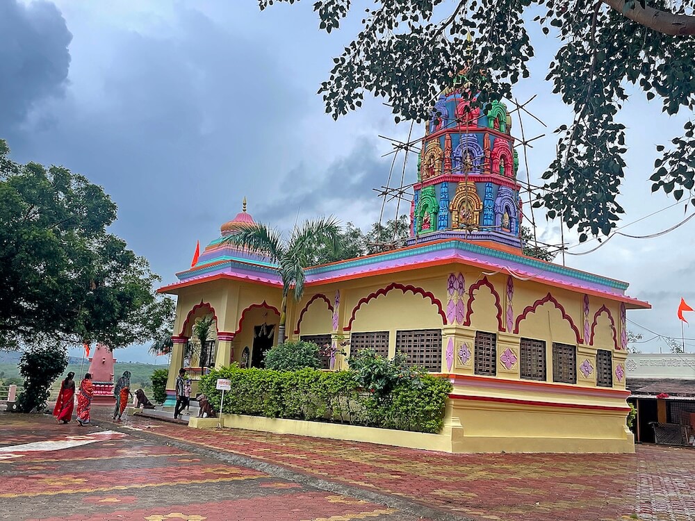 गावापासून जवळ नांदेड-नागपूर महामार्गालगत एका उंच टेकडीवर हे मंदिर आहे. मंदिराला असलेल्या तटबंदीत एक मोठे प्रवेशद्वार आहे. प्रवेशद्वारासमोर सुमारे अकरा प्रशस्त पायऱ्या आहेत. प्रवेशद्वारात दोन्ही बाजूला एकमेकांना महिरप कमानीने जोडलेले प्रत्येकी चार नक्षीदार स्तंभ आहेत. या स्तंभांवर सलग तीन स्वागतमंडप आहेत. डाव्या व उजव्या बाजूचे मंडप कमी उंचीचे आहेत, तर मधला मंडप अधिक उंचीचा आहे. दोन्ही बाजूच्या मंडपांवर प्रत्येकी एक आमलक आहे आणि मधल्या मंडपावर तीन आमलक आहेत. सर्व आमलकांवर कळस आहेत. मंदिराच्या प्रशस्त प्रांगणात भाविकांना बसण्यासाठी आसने आहेत. तसेच चौथऱ्यावर दीपस्तंभ आहेत. प्रांगणात यज्ञकुंड आहे. येथे तटबंदीलगत भवानी देवी व हनुमान यांच्या शेंदूरचर्चित पाषाण मूर्ती आहेत. मूर्तीजवळ भाविकांनी नवसाची वस्त्रे बांधली आहेत. संपूर्ण हिरवाईने नटलेला हा मंदिराचा परिसर वन विभागाच्या अखत्यारीत आहे.