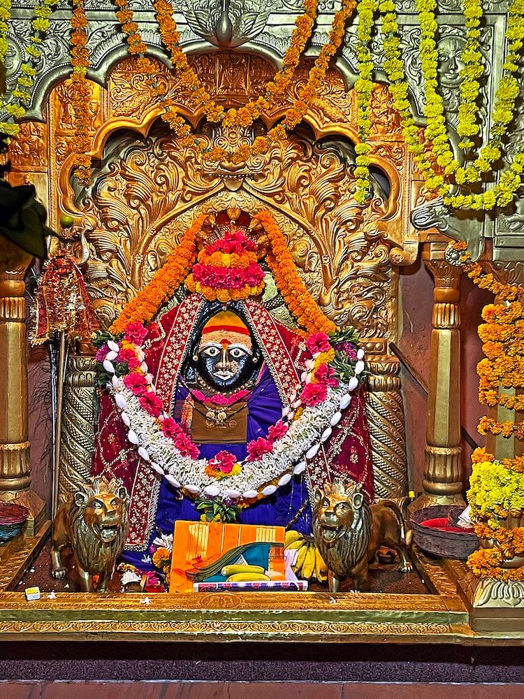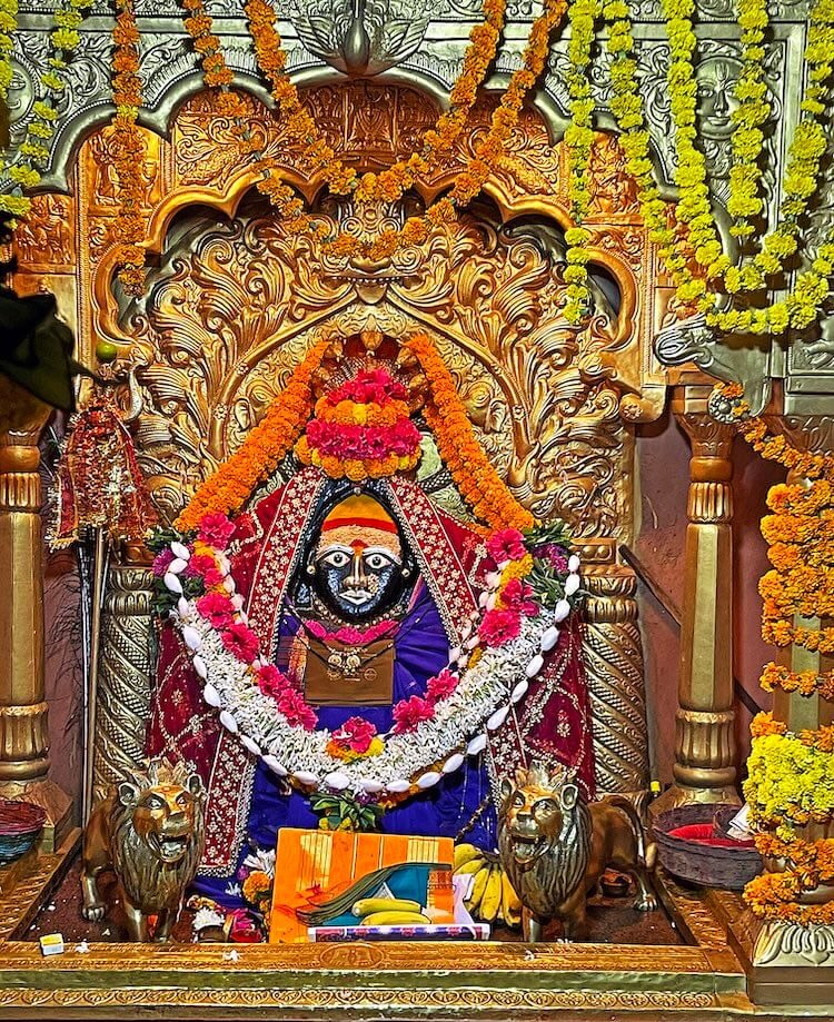 देवीची मूर्ती पूर्वाभिमुख असल्याने वर्षातील काही दिवस सूर्योदयाची किरणे देवीस तेजाभिषेक घालतात. गर्भगृहाच्या बाह्यबाजूने प्रदक्षिणा मार्ग आहे.