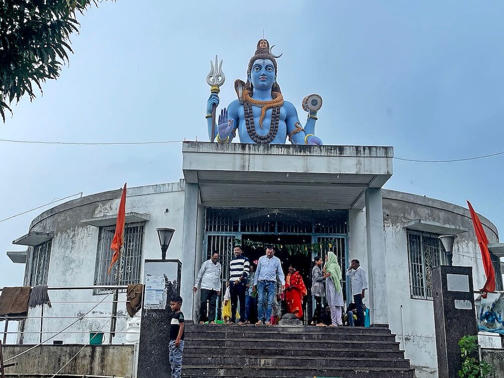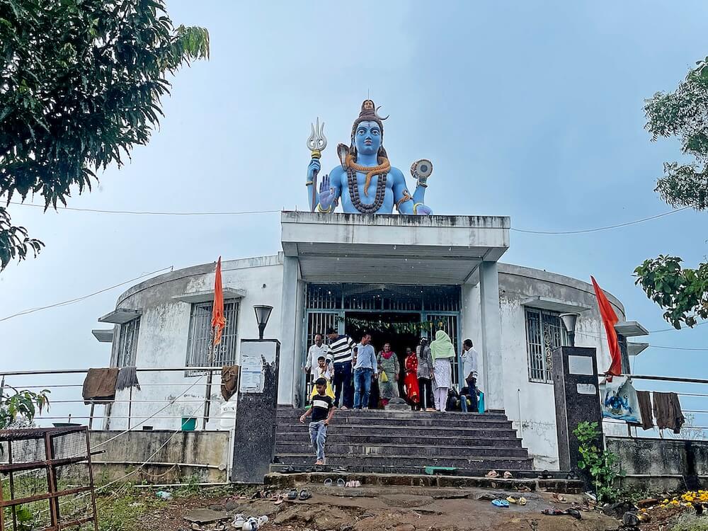 या मंदिरापासून काही अंतरावर महादेवाचे तटबंदी असलेले शिवपिंडीसदृश वर्तुळाकार मंदिर आहे. मुखमंडप, सभामंडप व गर्भगृह असे या मंदिराचे स्वरूप आहे. मुखमंडपात समोरील बाजूला दोन स्तंभ आहेत आणि छताची मागील बाजू सभामंडपाच्या भिंतीवर तोलली आहे. सभामंडपाचे प्रवेशद्वार प्रांगणापेक्षा उंचावर आहे. बंदिस्त स्वरूपाच्या सभामंडपात उजेड व हवा येण्यासाठी वातायने आहेत. सभामंडपात प्रवेशद्वारासमोर नंदीची काळ्या पाषाणातील मूर्ती आहे. गर्भगृह सभामंडपापेक्षा खोल आहे, तसेच ते भिंतीविरहित व खुल्या स्वरूपाचे आहे. गर्भगृहात खाली उतरण्यासाठी तीन पायऱ्या आहेत. गर्भगृहात मध्यभागी शिवपिंडी आहे. शिवपिंडीवर छत्र धरलेला पितळी नाग आहे आणि जलधारा धरलेले अभिषेकपात्र छताला टांगलेले आहे. मंदिराच्या छतावर महादेवाची ध्यानस्थ स्वरूपातील सुमारे वीस फूट उंच मूर्ती आहे. पूर्वी येथील शिवपिंडी भवानी देवीच्या मंदिरात होती, मात्र अलीकडील काळात नव्या मंदिराची स्थापना करून शिवपिंडी येथे स्थापित करण्यात आली. मंदिराजवळ वन विभागाने विकसित केलेले बालोद्यान आहे. येथे मुलांना खेळण्यासाठी विविध प्रकारची साधने उपलब्ध करून दिली आहेत. मंदिराच्या मागे सांस्कृतिक कार्यासाठी सभागृह व मंगल कार्यालय आहे.