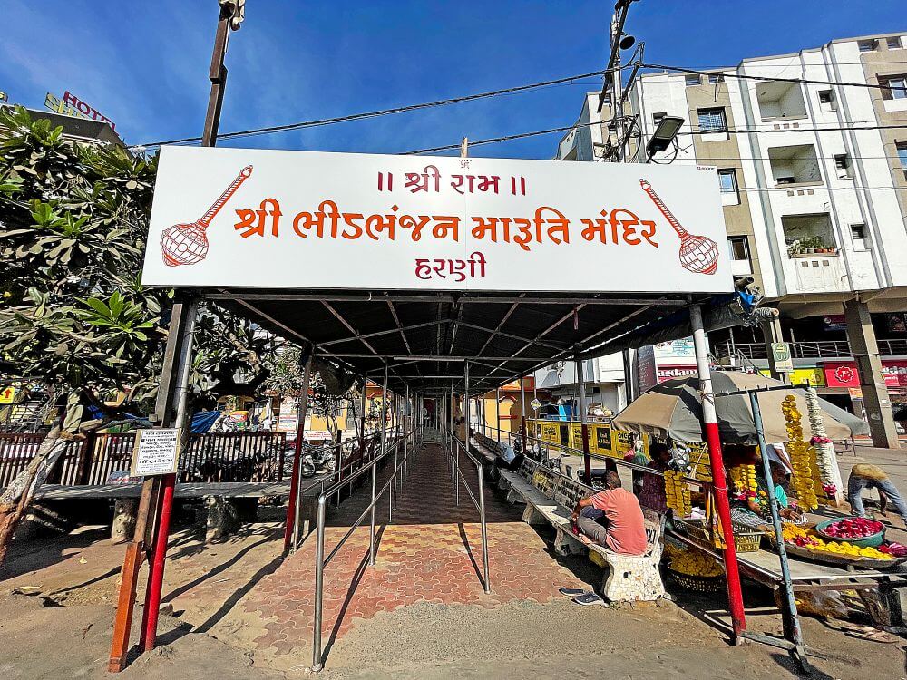 Located around 10 km from Vadodara city on Airport Road, the village of Harni is home to the temple. Numerous stalls selling flowers and offerings line the way. A roofed walkway with benches leads to a dome-shaped pavilion housing a meditative idol of Hanuman. From here, visitors enter the temple courtyard, surrounded by corridors on all sides, with the Bhidbhanjan Hanuman Temple at the center.