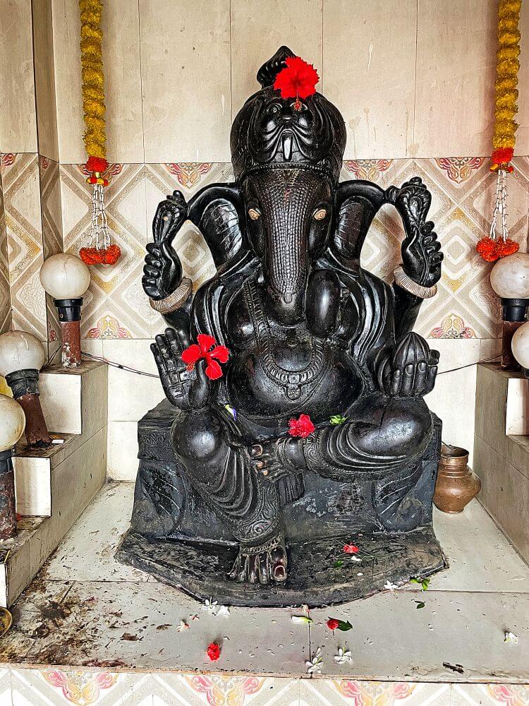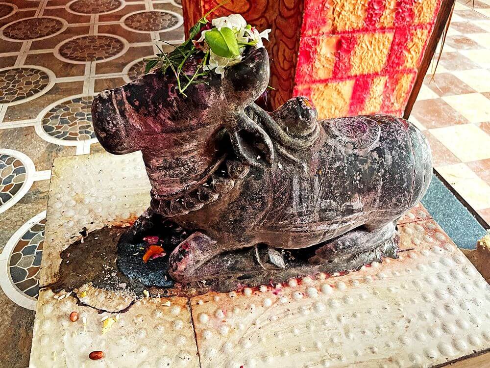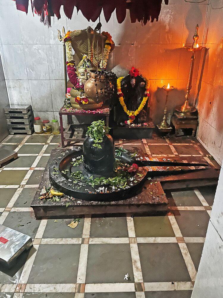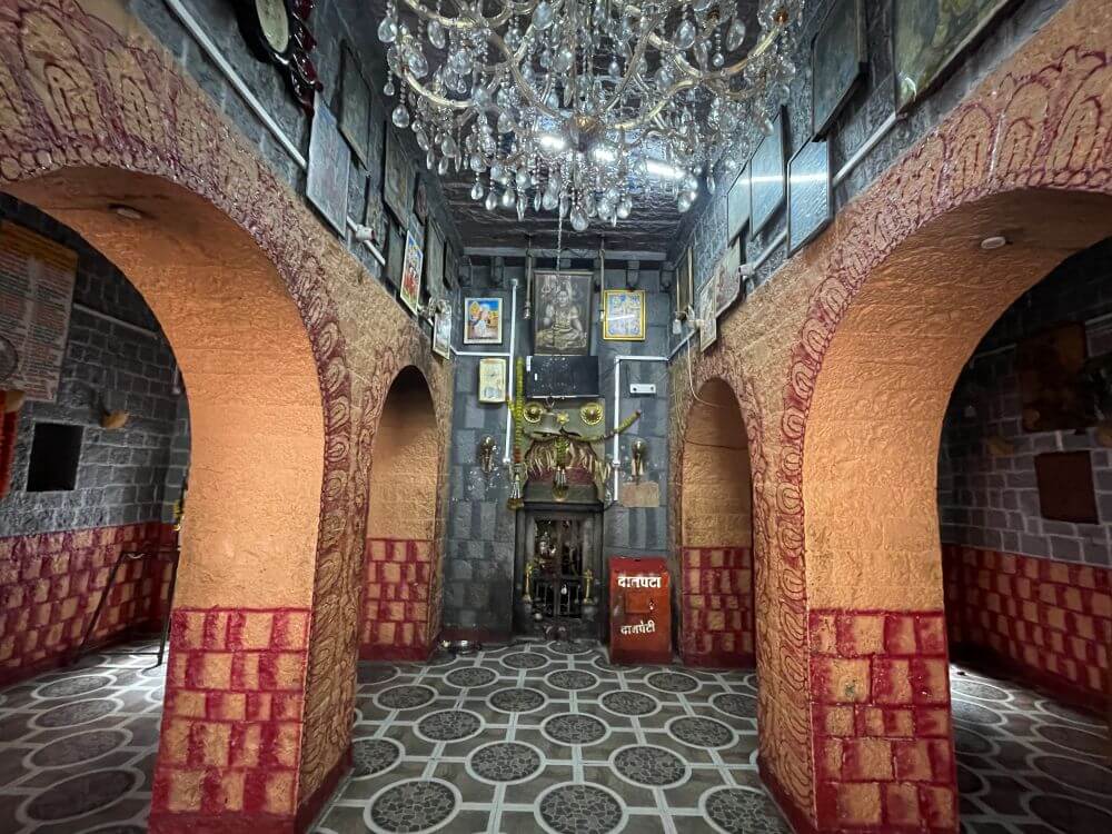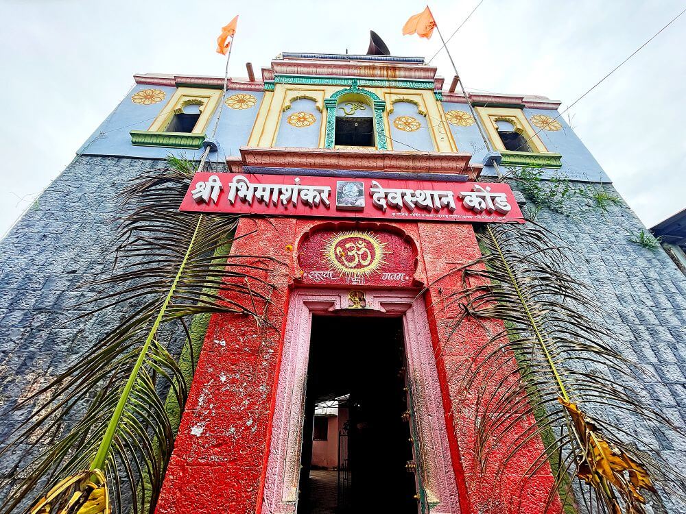 प्रवेशद्वाराच्या वर, वर्तुळात सहा पाकळ्यांच्या फुलाची अनोखी रचना आहे. गर्भगृहाच्या दर्शनीभिंतींवर महिरपी नक्षी व महिरपाच्या वरील दोन्ही बाजूस चक्र नक्षी आहेत. गर्भगृहात जमिनीवर मध्यभागी स्वयंभू शिवपिंडी आहे व जलधारा धरलेले तांब्याचे अभिषेकपात्र छताला टांगलेले आहे. मागील भिंतीलगत वज्रपिठावर पार्वतीची चतुर्भुज मूर्ती आहे. त्याशेजारी महादेवाचा पितळी मुखवटा व त्यावर छत्र धरलेला पंचफणी पितळी नाग आहे. गर्भगृहाच्या छतावर पाच थरांचे द्वादशकोनी उंच व निमुळते शिखर आहे. शिखराच्या प्रत्येक थरात देवकोष्टके व त्यावरील आमलकावर कळस आहेत. शिखराच्या शीर्षभागी आमलक, त्यावर कळस व ध्वजपताका आहे. मंदिराच्या मुख्य प्रवेशद्वाराच्या समोरील बाजूला भिमाशंकर गणेश मंदिर आहे. सभामंडप व गर्भगृह अशी रचना असलेल्या या मंदिरात गणेशाची काळ्या रंगातील सुंदर व मोठी मूर्ती आहे.
