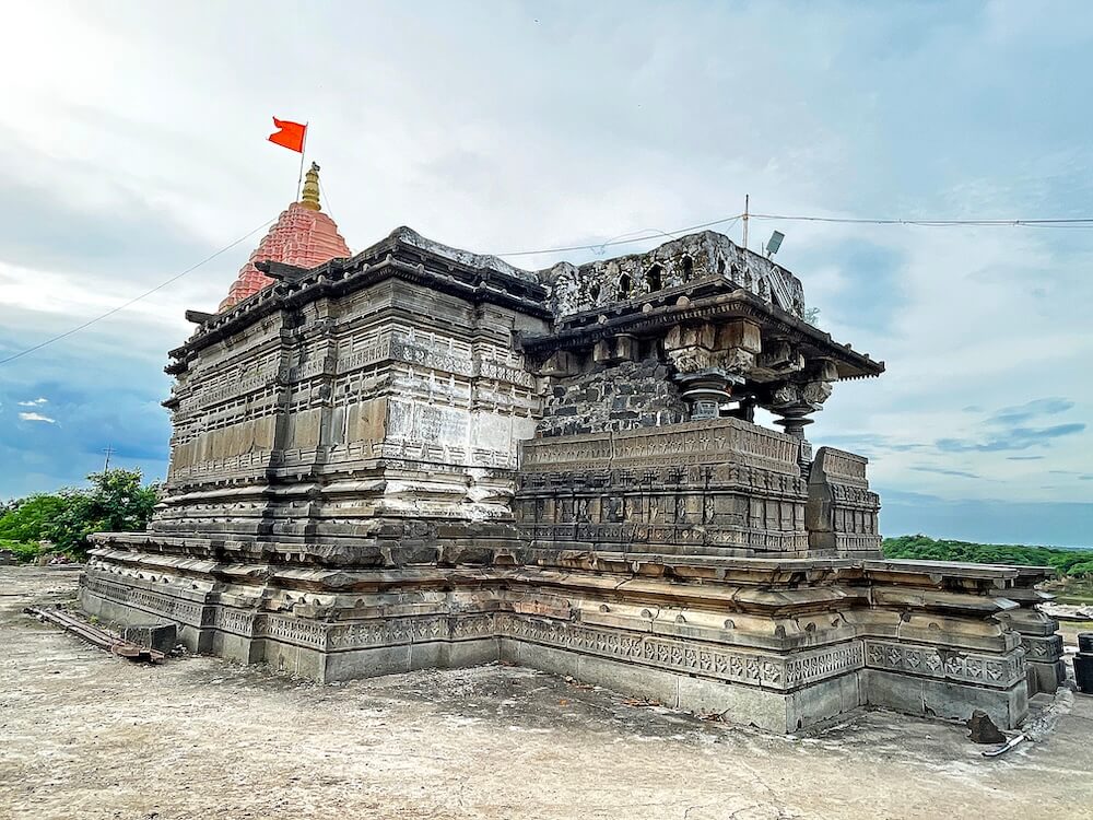 मंदिरासमोर प्रशस्त वाहनतळ आहे. येथून मंदिराच्या प्रांगणात प्रवेश होतो. मंदिराच्या मागील बाजूला तटबंदीत एक प्रवेशद्वार आहे. या प्रवेशद्वारास ‘नैवेद्य द्वार‘ म्हटले जाते. असे सांगितले जाते की यादव काळात देवाचा नैवेद्य या द्वारातून येत असे. अर्धमंडप, सभामंडप, अंतराळ व गर्भगृह अशी या मंदिराची संरचना आहे. अर्धमंडपास पाच पायऱ्या आहेत. पायऱ्यांच्या दोन्ही बाजूस कठडे आहेत. अर्धमंडपासही कठडे आहेत. या कठड्यांवर प्रवेशद्वाराच्या दोन्ही बाजूस दोन गोलाकार नक्षीदार वामन स्तंभ आहेत.