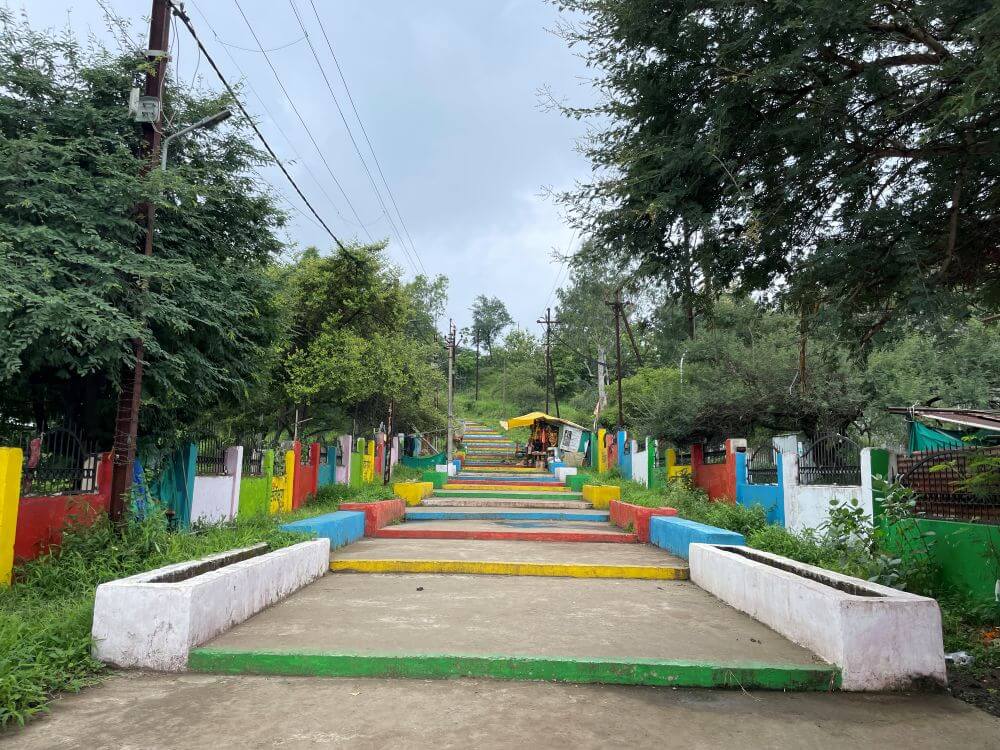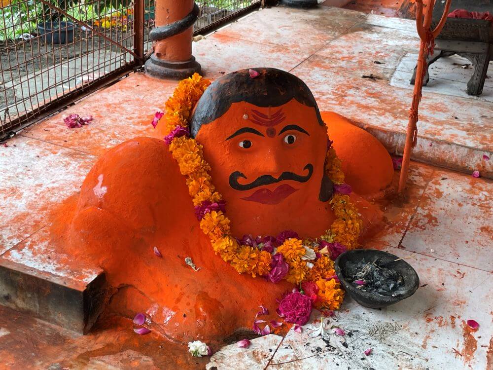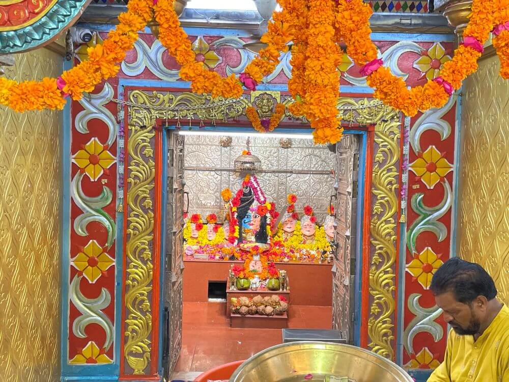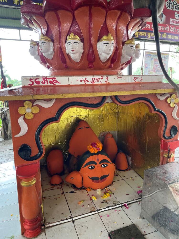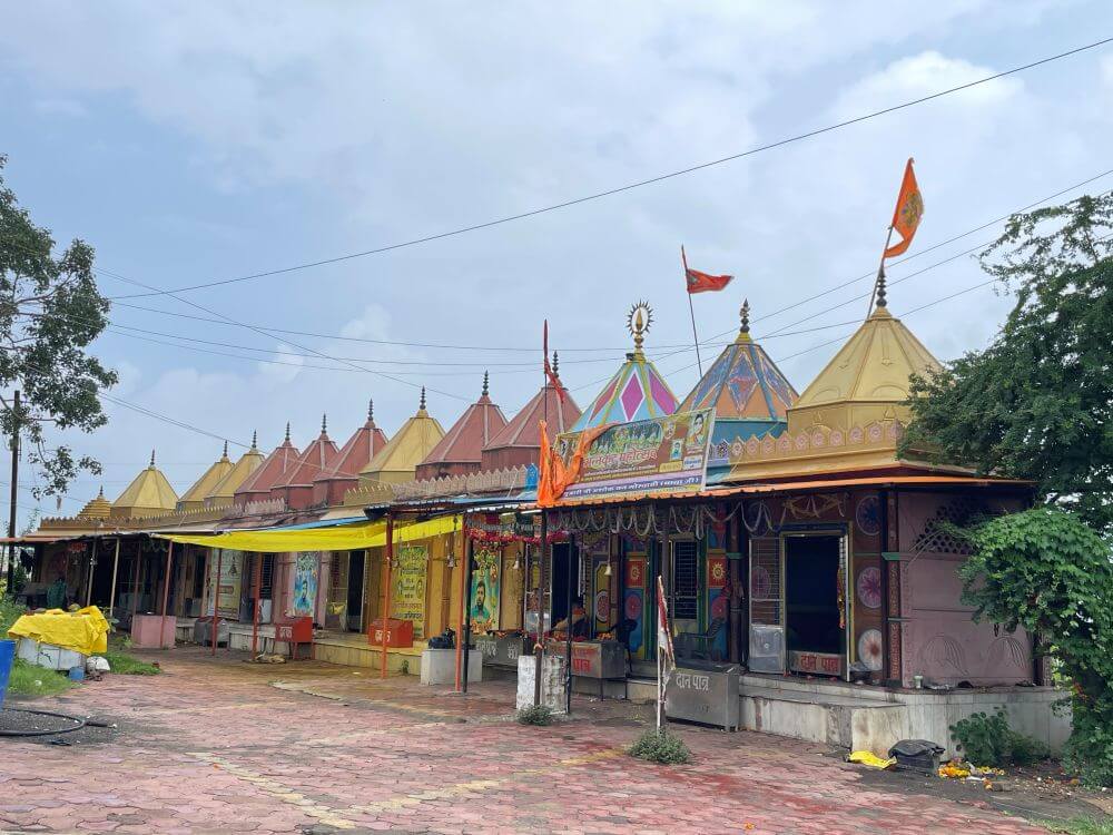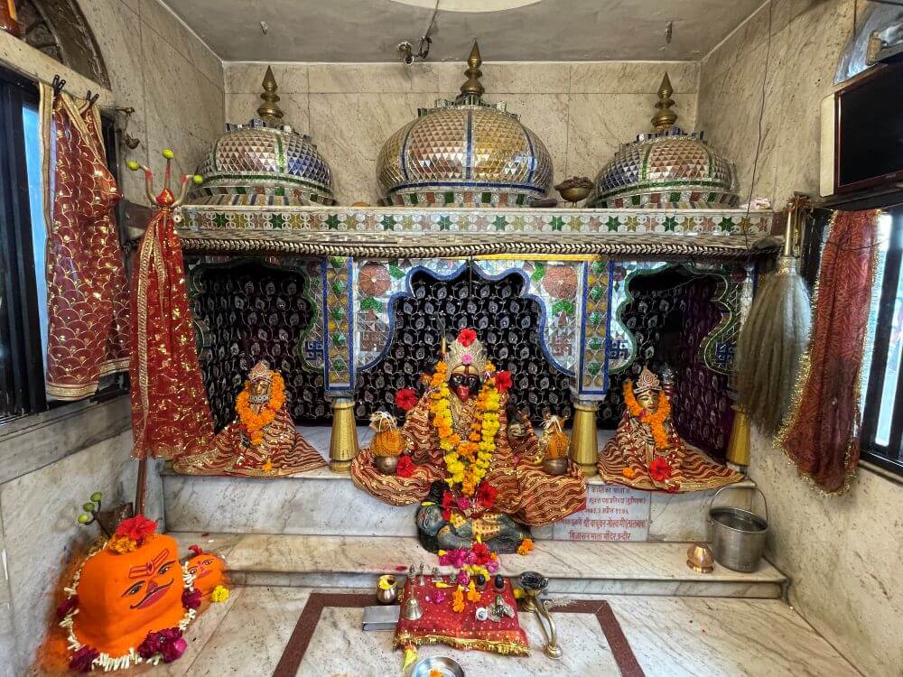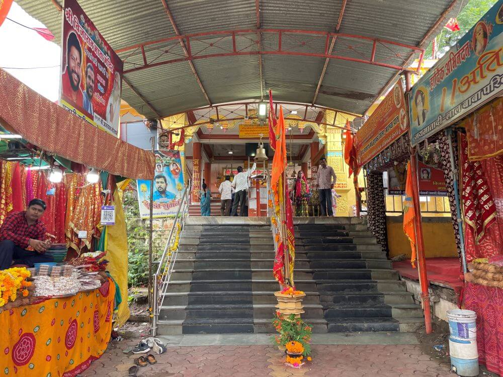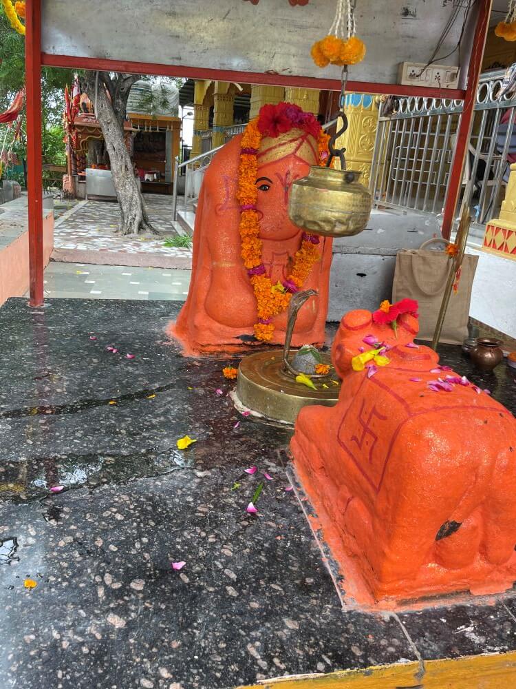in a cluster of smaller shrines, there are stone images that devotees also worship with heartfelt reverence. Not far from the temple stand modest shrines dedicated to Panchmukh Haori Vijay Hanuman, Narmadeshwar Mahadev, Santoshi Mata and other deities.