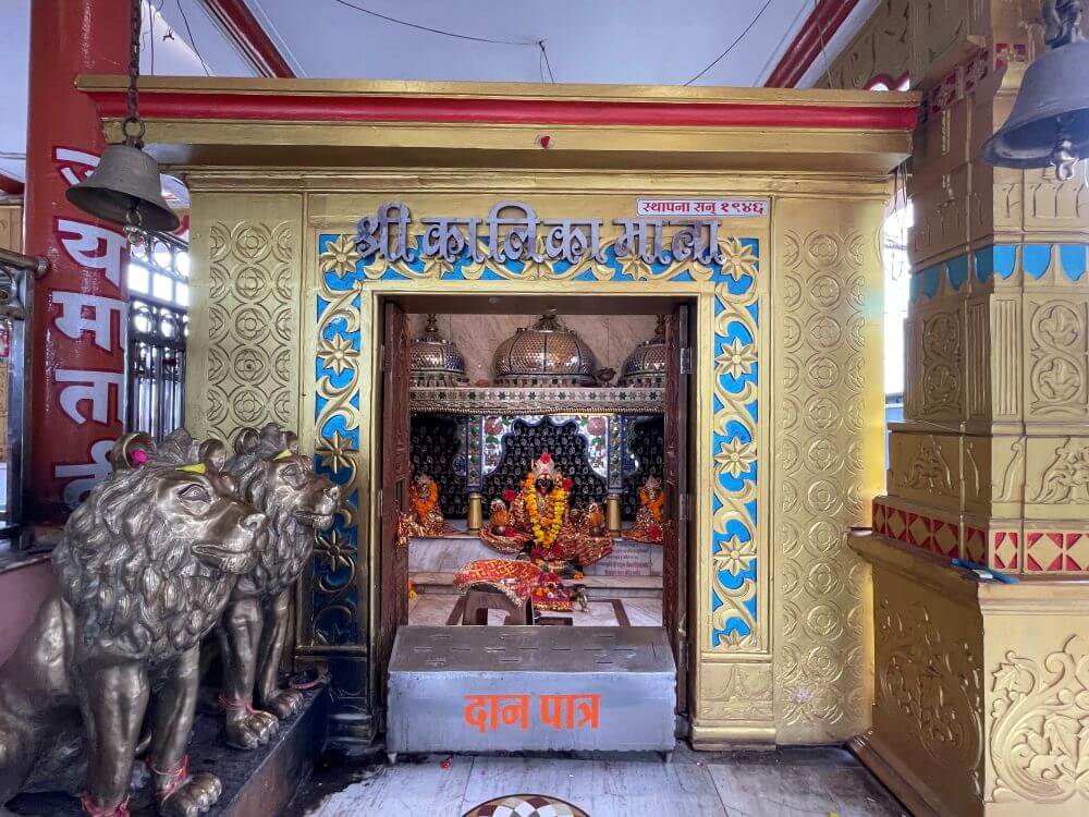 The temple’s more recent history is remembered like this – Maharaja Shivajirao Holkar of the Indore State (who reigned from 1886 to 1903) made a vow to the Goddess, praying for the boon of a son. When his vow was fulfilled, he placed a golden brick here with great devotion and erected the temple.