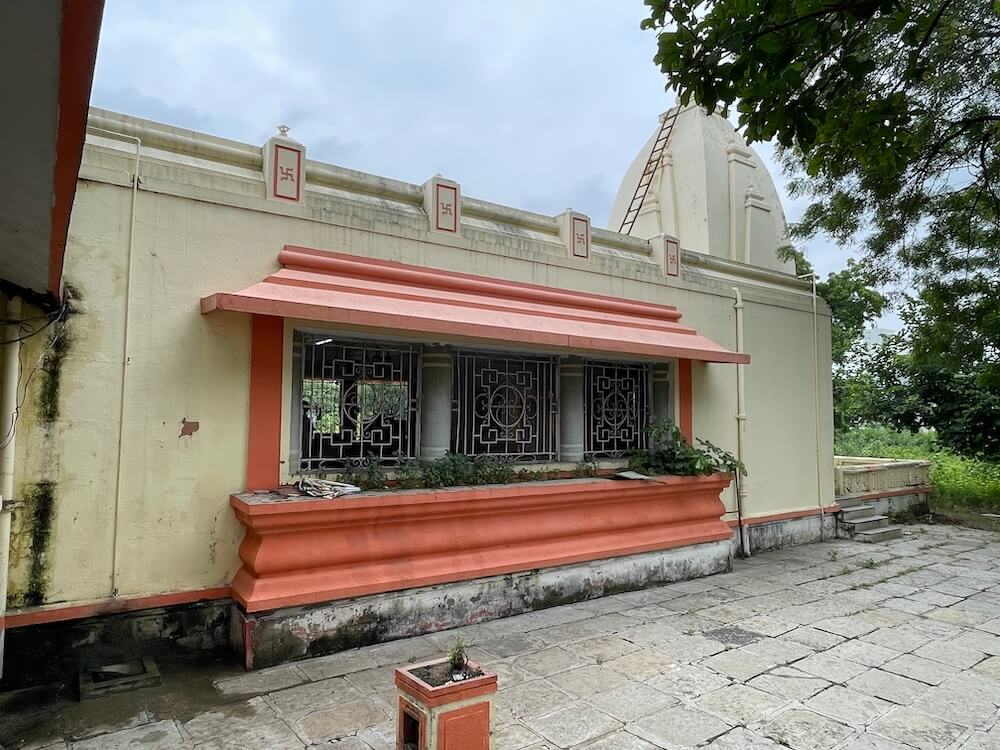 शहरात असूनही या मंदिराचा परिसर शांत व प्रसन्न आहे. मंदिराभोवती प्रशस्त प्रांगण आहे. या प्रांगणात भाविकांना बसण्यासाठी बाके आहेत. मंदिरासमोर असणाऱ्या एका लहानशा लॉनमध्ये एका चौथऱ्यावर शिवशंकराची ध्यानस्थ मूर्ती विराजमान आहे. मुखमंडप, सभामंडप व गर्भगृह अशी या मंदिराची संरचना आहे. पाच पायऱ्या चढून उंच अधिष्ठानावर असणाऱ्या या मंदिराच्या मुखमंडपात प्रवेश होतो. अर्धखुल्या प्रकारच्या या मुखमंडपात भाविकांना बसण्यासाठी कक्षासने आहेत. सभामंडपाच्या प्रवेशद्वाराच्या दोन्ही बाजूंकडील भिंतींवरील संगमरवरी फरशांवर भगवद्गीतेतील श्लोक कोरलेले आहेत. येथील बंदिस्त सभामंडपातील भिंतींवरील संगमरवरी फरशांवर लक्ष्मीनारायण, शिवशंकर, राधा-कृष्ण, दुर्गामाता आदींच्या मूर्ती कोरलेल्या आहेत व त्याखाली या देव-देवतांच्या महतीचे वर्णन केलेले आहे. सभामंडपाच्या भिंतींतील सर्व स्तंभांवर गजराजांच्या मूर्ती कोरलेल्या आहेत.