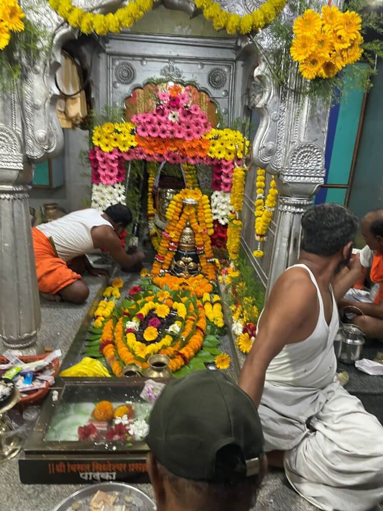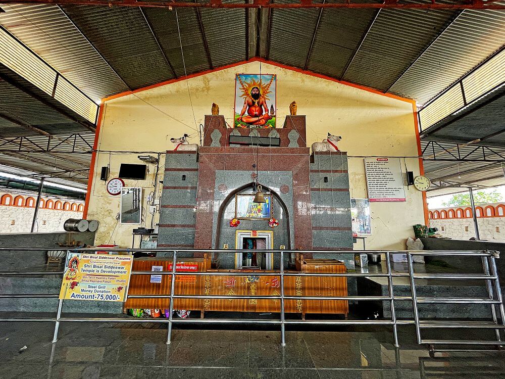 गर्भगृहाच्या प्रवेशद्वाराच्या दोन्ही बाजूला कक्षासने आहेत. प्रवेशद्वाराच्या दोन्ही बाजूस दीपकोष्टके आहेत. नक्षीदार चौकोनी स्तंभ कमानीने एकमेकांशी जोडलेले आहेत. द्वारशाखांवर उभ्या धारेची नक्षी व ललाटबिंबावर गणपतीची मूर्ती आहे. मंडारकावर कीर्तिमुख शिल्प आहे. गर्भगृहात एक लांबट सपाट काळा पाषाण आहे. याचा पाषाणाची बिसलसिद्धेश्वर म्हणून पूजा केली जाते. त्यांच्या मागे रेवण्णा व महालिंग यांच्या चांदीचे मुखवटे घातलेल्या पाषाण मूर्ती आहेत. असे सांगण्यात येते की येथे बिसलसिद्धेश्वर स्वामी हे झोपलेल्या अवस्थेत आहेत व त्यांचे शिष्य–परिचारक रेवण्णा स्वामी हे बसलेल्या अवस्थेत आहेत.