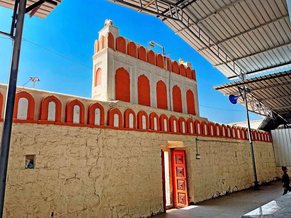 बांधणीची तटबंदी आहे. तटबंदीतील प्रवेशद्वार सुमारे वीस फूट उंचीचे आहे व त्यावर आडव्या रचनेचे शिखर आहे. शिखरावर दोन्ही बाजूला सिंहशिल्पे आहेत. प्रवेशद्वारावर उभी व आडवी पाच कोष्टके आहेत व मध्यभागी अर्धचंद्राकार कमान आहे.