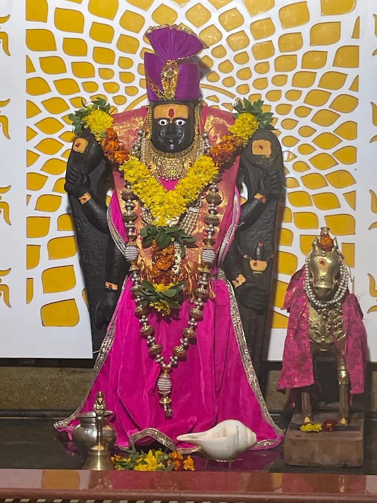 झडपांवर मंगल कलश व गजतोरण कोरलेले आहे, त्यावर पानाफुलांची नक्षी दिसते. गर्भगृहात वज्रपीठावर ब्रह्मनाथांची काळ्या पाषाणातील चतुर्भुज मूर्ती आहे. मूर्तीच्या वरील दोन हातांत शंख व चक्र, तर खालील एका हातात त्रिशूल आणि दुसरा हात अभय मुद्रेत आहे. ब्रह्मनाथ हे भैरवनाथ महादेवाचा अवतार असल्याची मान्यता असल्याने मूर्ती चतुर्भुज असल्याचे सांगितले जाते. वज्रपीठावर मूर्तीच्या बाजूला पितळेचे अश्वशिल्प आहे. बंदिस्त स्वरूपाच्या गर्भगृहात उजेड व हवा येण्यासाठी वातायने आहेत. गर्भगृहाच्या वितानावर (छतावर) पद्मनक्षी कोरलेली आहे. गर्भगृहाच्या छतावर तीन थरांचे चौकोनी शिखर आहे. द्रविडी शैलीतील या शिखरावर पहिल्या दोन थरात कूट व शाल रचना आहे आणि तिसऱ्या वर्तुळाकार थरावर घुमट आहे. शिखराच्या शीर्षभागी आमलक, त्यावर कळस व ध्वजपताका आहेत.