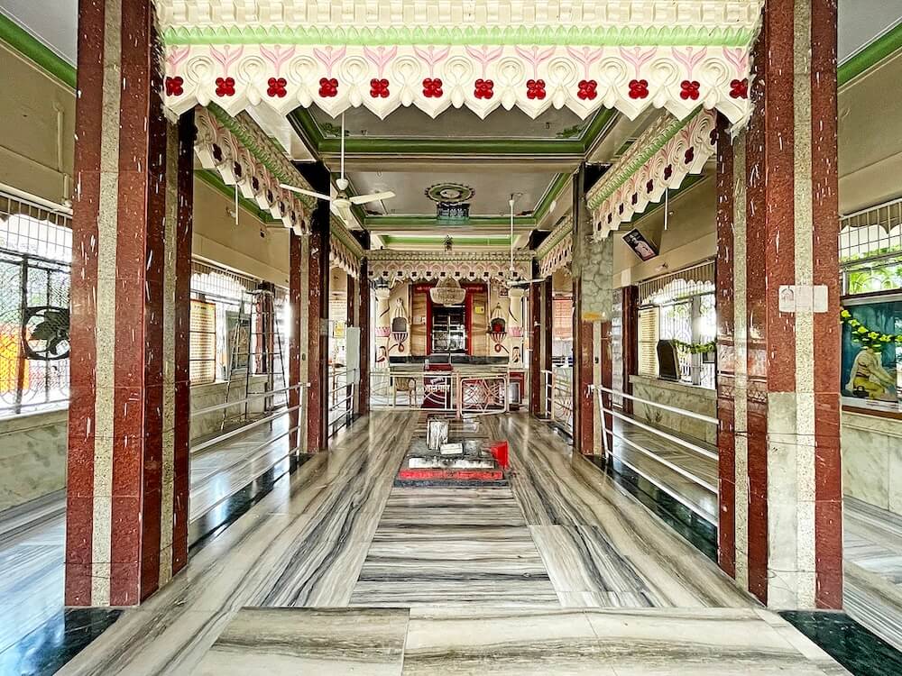 बंदिस्त स्वरूपाच्या सभामंडपात स्तंभ व फरसबंदी संगमरवरी आहे. हे सर्व स्तंभ वरील बाजूने नक्षीदार कलाकृतीने एकमेकांशी जोडलेले आहेत. सभामंडपात मध्यभागी होमकुंड आहे. सभामंडपातून चार पायऱ्या चढून उंच असलेल्या अंतराळात प्रवेश होतो. अंतराळात प्रदक्षिणा मार्ग सोडून गर्भगृहाची रचना आहे. गर्भगृहाच्या प्रवेशद्वाराच्या दोन्ही बाजूला असलेल्या देवकोष्टकांवर नागफण्यांची कलाकुसर आहे.