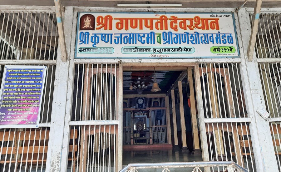 पेण–खोपोली मार्गावर चावडी नाक्यापासून हाकेच्या अंतरावर असलेले हे मंदिर बाहेरून पाहिले तर कौलारू घरासारखे दिसते; परंतु आत गेल्यावर त्याच्या प्राचीन व लाकडी रचनेचे आकलन होते. उंच जगतीवर उभे असलेल्या या दुमजली मंदिराची संरचना सभामंडप व गर्भगृह अशी आहे. सुमारे १०० वर्षांपूर्वीच्या मंदिरातील संपूर्ण लाकडी बांधकाम अद्यापही भक्कम आहे. येथील सभामंडपात अष्टविनायकांच्या प्रतिमा लावण्यात आलेल्या आहेत. सभामंडपाच्या पुढील बाजूस प्रदक्षिणा मार्ग सोडून गर्भगृह आहे. या गर्भगृहात कोरीव काम केलेल्या एका मोठ्या शिळेवर गणपतीची सुंदर मूर्ती विराजमान आहे.