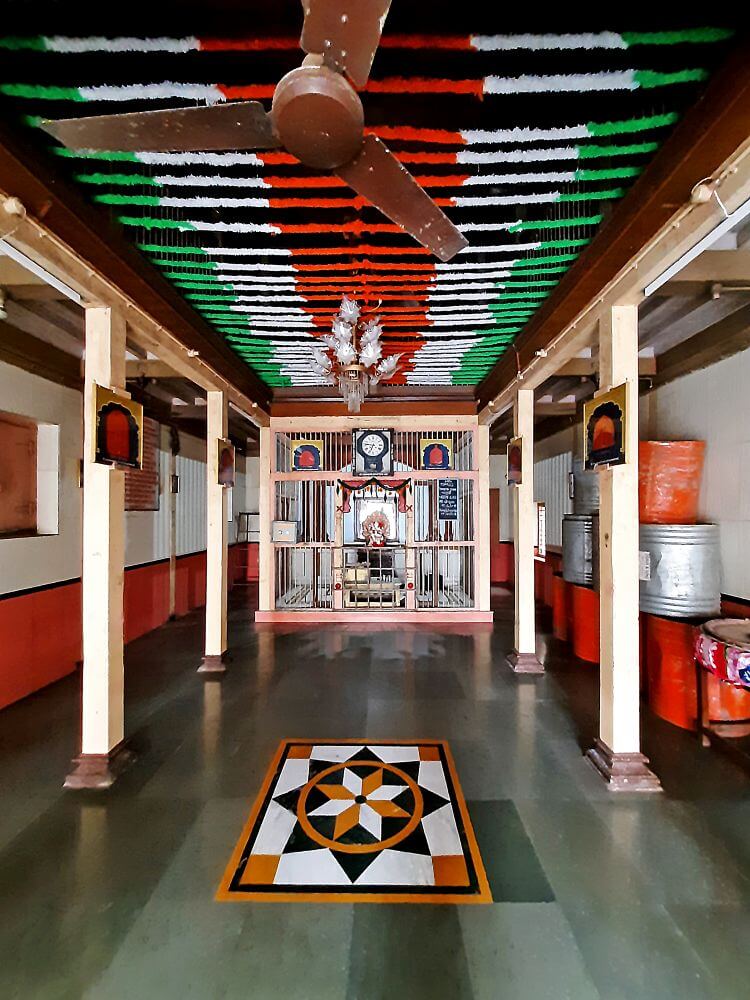 संगमरवरी शिळेमध्ये कोरलेली ही मूर्ती अवघ्या १६ इंच उंचीची आहे. उजव्या गुडघ्यावर डावा पाय ठेवून बसलेली ही गणेशमूर्ती डाव्या सोंडेची आहे. मूर्तीचा खालील उजवा हात अभयमुद्रेत आहे, तर डाव्या हातात लाडू आहे. वरच्या उजव्या हातात परशू आणि डाव्या हातात पाश ही गणेशाची आयुधे आहेत. पायानजीक छोटी मूषकमूर्ती आहे. या मूर्तीचे वैशिष्ट्य म्हणजे ती मयुरासनाधिष्ठित आहे. तिच्या मागच्या बाजूस असलेल्या सोनेरी प्रभावळीत मयूर कोरलेले आहेत. मयुरांचे पंख विविध खड्यांनी शोभायमान आहेत. महिरपी प्रभावळीवर बारीक नक्षीकाम केलेले आहे. वरच्या बाजूला ओमकार कोरलेला आहे. वेळोवेळी या मंदिराचा जीर्णोद्धार झाला असला, तरी तो करताना मूर्ती व मंदिराची मूळ रचना मात्र कायम ठेवण्यात आलेली आहे. सध्या गर्भगृहात असलेल्या मूर्तीची प्रतिष्ठापना १९१८ मध्ये करण्यात आली होती व सध्याची वास्तू १९२७ मध्ये बांधण्यात आलेली आहे. या मंदिरात जुन्या पद्धतीचे एक घड्याळ अद्यापही सुरू आहे. ते भास्कर रा. दामले यांनी १९३३ मध्ये दिल्याचा त्यावर उल्लेख आहे.