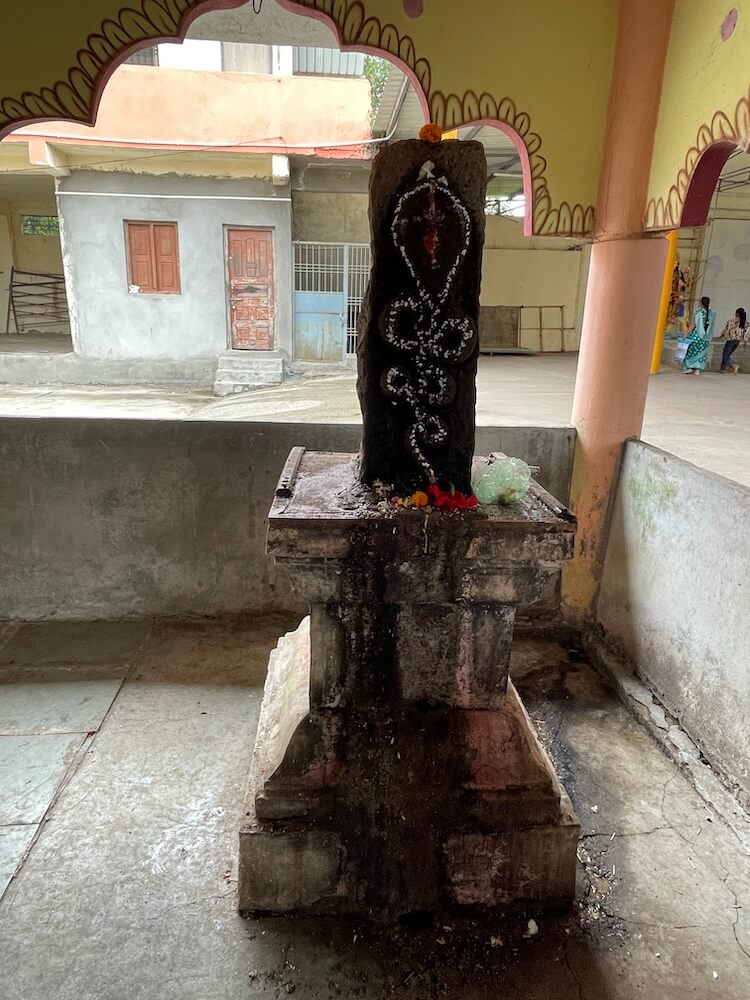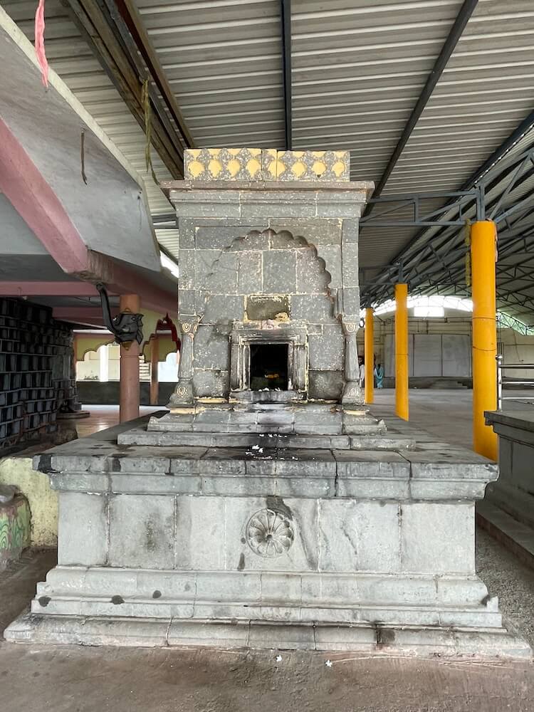 प्रांगणात दर्शनमंडपाच्या बाजूला चौथरा व त्यावर निमुळती होत गेलेली दीपमाळ आहे. चौथऱ्यावर दीपमाळेच्या बाजूला नंदी शिल्प आहे. येथेच एक लहान मंदिर आहे, ज्यात स्थानिक देवतेची मूर्ती आहे. प्रांगणात मंदिरासमोर कोरीव पाषाणात बांधलेली प्राचीन बारव आहे. विशेष म्हणजे, या बारवेतील पाणी कधीही आटत नाही, असे सांगितले जाते.