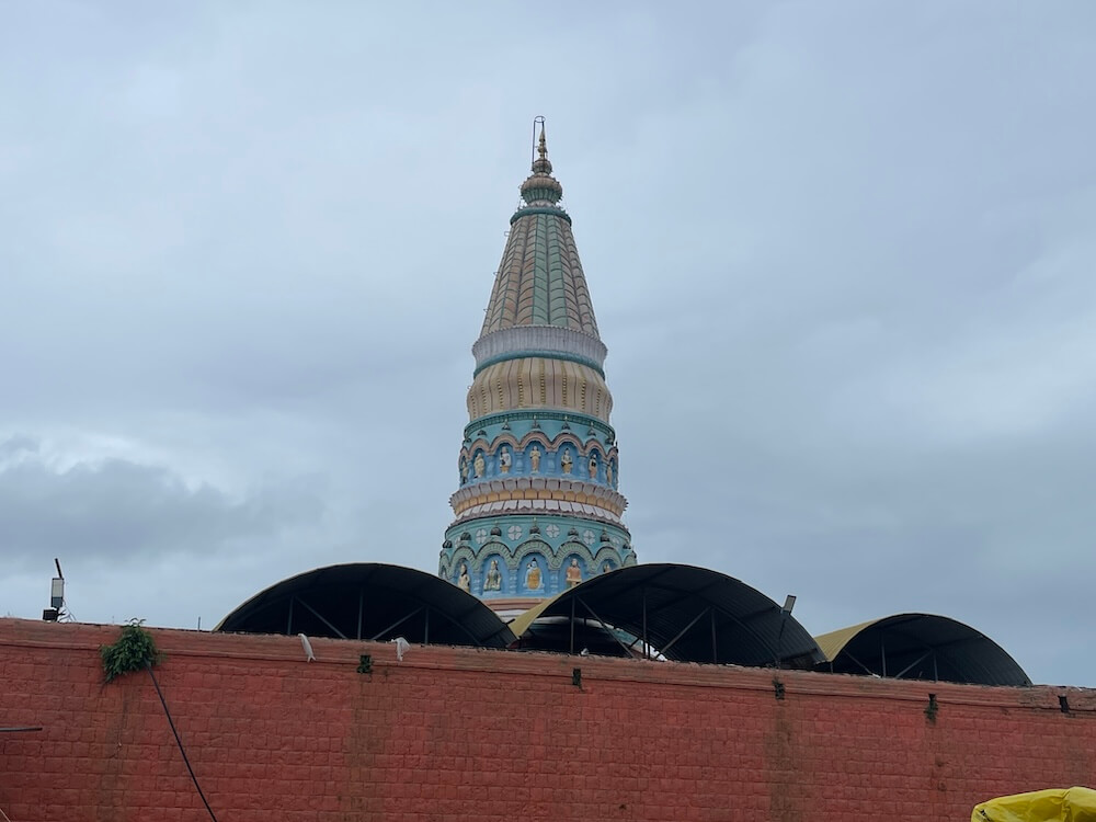प्रवेशद्वारास नक्षीदार लाकडी झडपा आहेत. सभामंडपात प्रत्येकी चार नक्षीदार स्तंभांच्या चार रांगा आहेत. सर्व स्तंभ चौकोनी स्तंभपादावर उभे आहेत. त्यांच्या स्तंभदंडात चौकोन, षट्कोन, अष्टकोन, वर्तुळ असे विविध भौमितिक आकार आहेत. सभामंडपात मध्यभागी जमिनीवर कासव शिल्प आहे. सभामंडपात दोन्ही भिंतींना लागून स्टेनलेस स्टीलचे कठडे लावून रांगांचे व्यवस्थापन केलेले आहे.