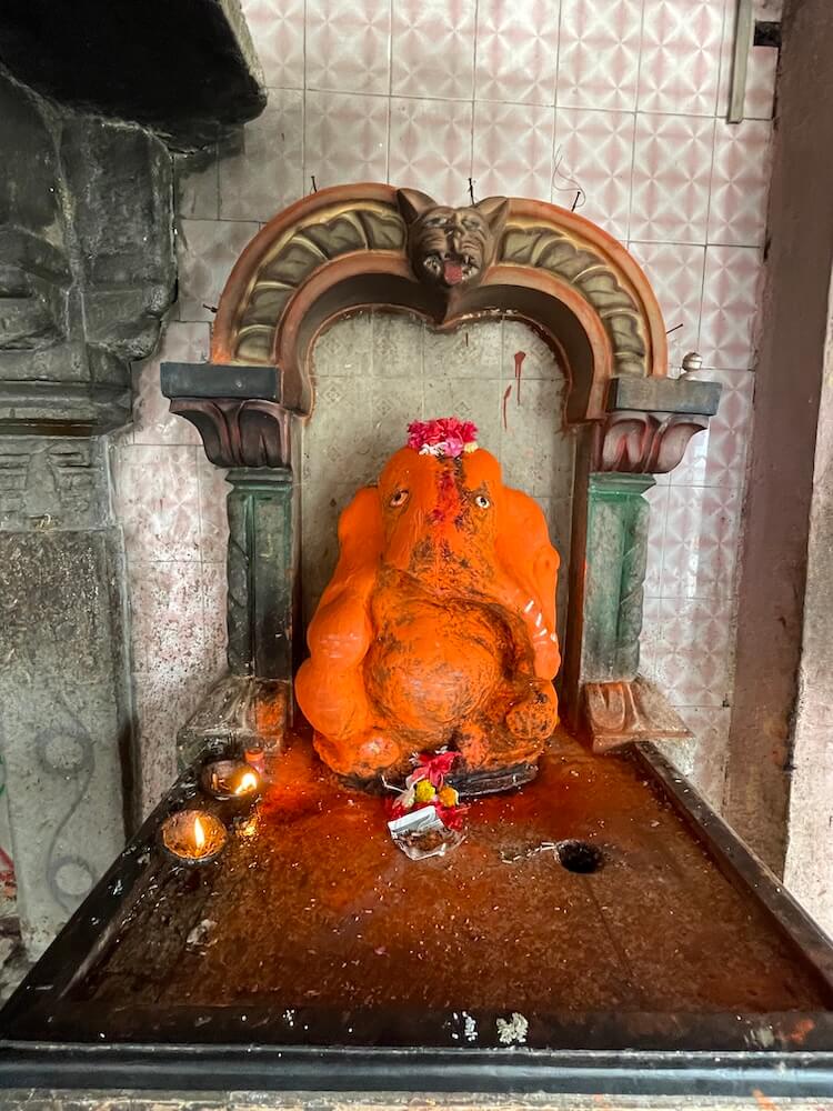 सभामंडपाच्या नक्षीदार द्वारशाखांवर पानाफुलांची नक्षी आहे आणि ललाटबिंबावर गणपती शिल्प आहे.