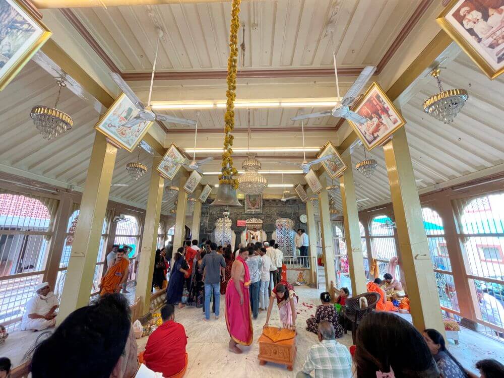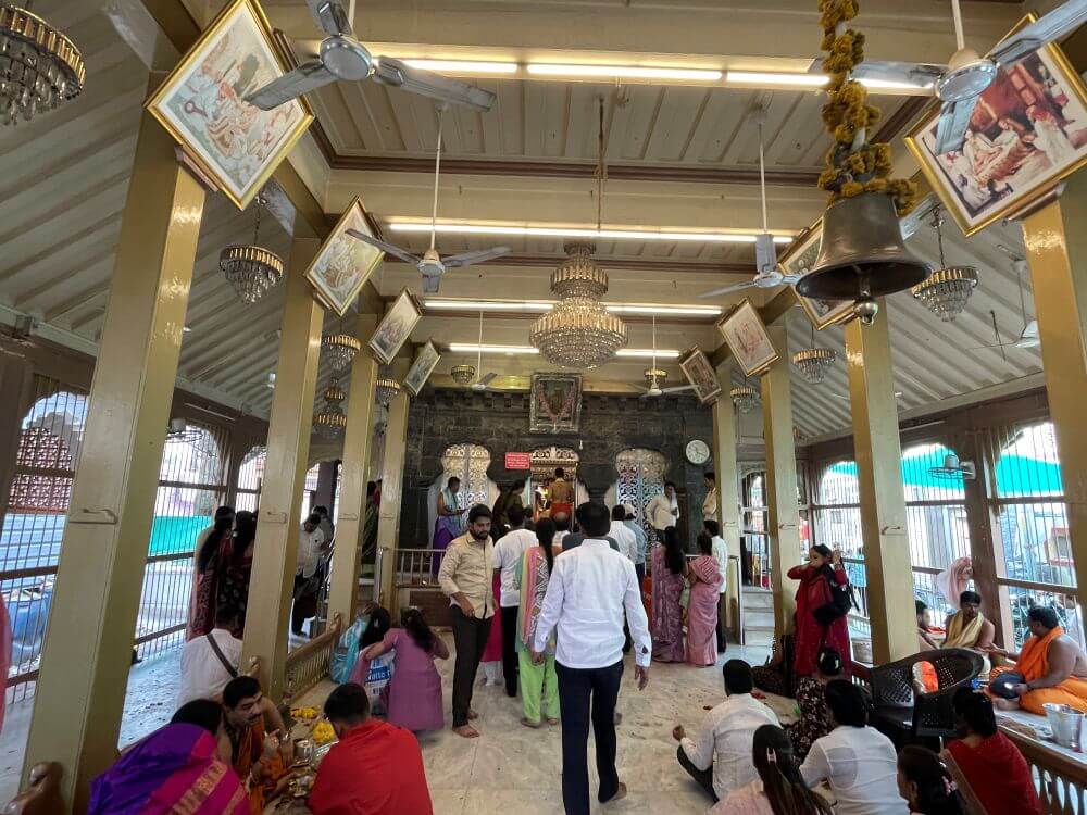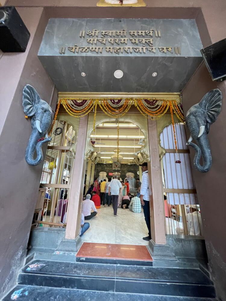 सभामंडप, अंतराळ व गर्भगृह अशी मंदिराची संरचना आहे. प्रांगणापेक्षा उंच असलेल्या सभामंडपाच्या प्रवेशद्वारासमोर पाच पायऱ्या आहेत. प्रवेशद्वाराच्या द्वारशाखांवर उभ्या धारेची नक्षी व ललाटबिंबावर चोळप्पांचे शिल्प आहे. खुल्या स्वरूपाच्या सभामंडपात प्रत्येकी पाच चौकोनी लाकडी स्तंभांच्या चार रांगा आहेत. बाह्य बाजूचे सर्व स्तंभ एकमेकांना महिरपी कमानीने जोडलेले आहेत. छताला मोठे झुंबर व पितळी घंटा टांगलेल्या आहेत. सभामंडपात अंतराळाच्या दर्शनी भिंतीवर चोळप्पा महाराजांच्या चित्राची मोठी तसबीर आहे. याशिवाय स्वामी समर्थ चरित्रातील काही प्रसंगांच्या प्रतिमा आहेत. पुढे अंतराळाचे प्रवेशद्वार आहे. प्रवेशद्वाराच्या दोन्ही बाजूला दोन नक्षीदार स्तंभ व त्यांवर तोरण आहे. अंतराळात डाव्या बाजूला लाकडी मखरात चोळप्पा महाराजांची पितळी मूर्ती आहे. पुढे रजतपटल आच्छादित गर्भगृहाच्या प्रवेशद्वाराच्या द्वारशाखांवर पानाफुलांची नक्षी व ललाटबिंबावर गणपतीची मूर्ती आहे. प्रवेशद्वारावरील तोरणात मध्यभागी सात फण्यांच्या नागाचे शिल्प व बाजूला श्रीदत्तात्रेय, श्रीपाद वल्लभ, नृसिंह सरस्वती, स्वामी समर्थ यांच्या तसबिरी आहेत. तोरणाखाली नागथर आहे.
