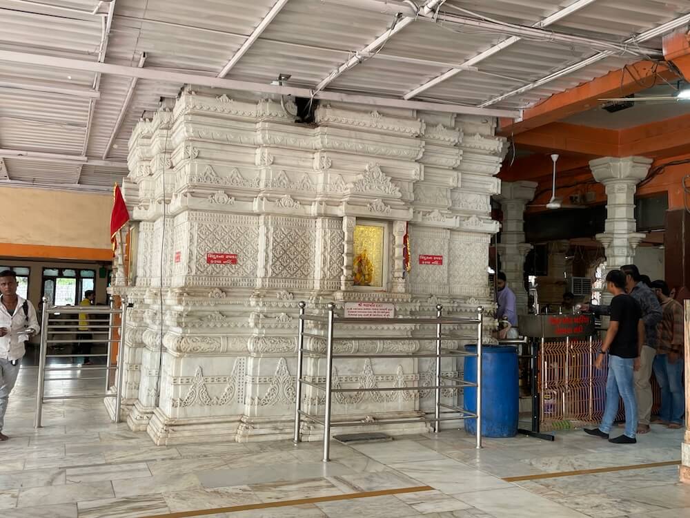 A great yagna was held to install the idol with full rituals and the deity became known as Dabhodia Hanuman. Another tale from the British era tells of a train that stalled near the village. Despite numerous efforts, it wouldn’t move. Locals suggested offering oil abhishek to Dabhodia Hanuman. When British officers complied, the train reportedly started running again. Since then, even today, a tin of oil is sent every year by Western Railways for ritual offerings. Though established in the 14th century, the temple was renovated in recent years. During that time, a saint named Jugardas blessed the village, proclaiming that locusts would never plague the region. Since then, locals say, their crops have remained untouched.