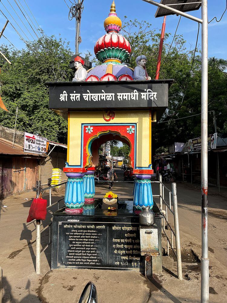 मंगळवेढे–पंढरपूर या मार्गालगत दामाजीपंत समाधी मंदिर आहे. खुला सभामंडप, अंतराळ व गर्भगृह अशी या मंदिराची संरचना आहे. येथील खुला सभामंडप हा मुख्य मंदिरासमोर नंतरच्या काळात बांधल्याचे जाणवते. मुळ मंदिराच्या गर्भगृहात असलेल्या वज्रपिठावर संत दामाजीपंत यांच्या पादुका व त्यामागे त्यांची काळ्या पाषाणातील मूर्ती आहे. त्यांच्या मूर्तीच्या मागे विठ्ठल–रुख्णिणीच्या मूर्ती आहेत.