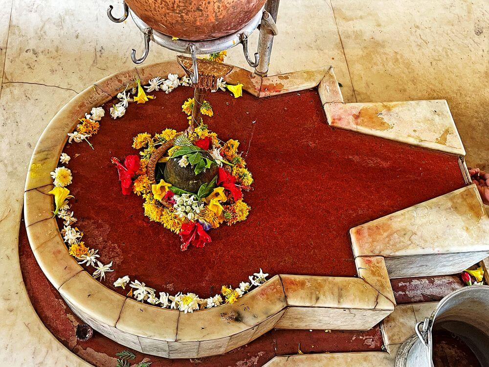 सभामंडपाच्या पुढे अंतराळाच्या प्रवेशद्वाराच्या दोन्ही बाजूस सभामंडपातून बाहेर पडण्यासाठी पायऱ्या आहेत. सभामंडपापेक्षा खाली असलेल्या अंतराळात पाच पायऱ्या उतरून प्रवेश होतो. या पायऱ्यांच्या मधोमध चौथऱ्यावर नंदीची मूर्ती आहे. पुढे गर्भगृहाचे प्रवेशद्वार आहे. प्रवेशद्वाराच्या दोन्ही बाजूला जाळीदार वातायने आहेत. प्रवेशद्वाराच्या सज्जावर शिवपिंडीची पुजा करणारा बालगणेश, नंदी दोन्ही बाजूस कलश आणि गजराज अशी शिल्पे आहेत. गर्भगृहात जमिनीवर मध्यभागी शिवपिंडी आहे. शिवपिंडीवर छत्र धरलेल्या नागाची तांब्याची प्रतिमा त्यावर जलधारा धरलेले अभिषेक पात्र आहे