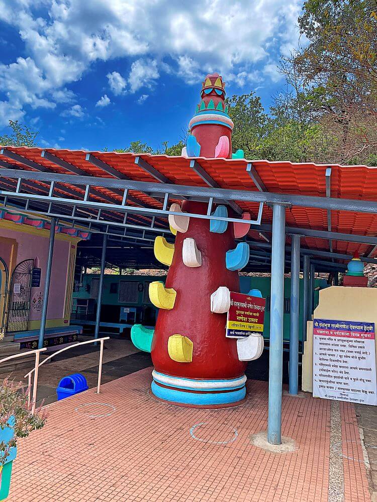 मंदिराचे वैशिष्ट्य म्हणजे येथील गर्भगृहात असलेली दशभुजा लक्ष्मीगणेशाची मूर्ती. सुमारे एक मीटर उंचीची ही वैशिष्ट्यपूर्ण गणेशमूर्ती गर्भगृहातील एका चौथऱ्यावर आसनस्थ आहे. असे सांगितले जाते की ही मूर्ती काश्मीर येथे घडवली गेली आहे. या गणेशाला दहा हात असून उजवीकडील वरच्या पहिल्या हातात चक्र, दुसऱ्यात त्रिशूळ, तिसऱ्यात धनुष्य, चौथ्यात गदा तर पाचव्या हातात म्हावळुंग हे प्रजोत्पादन दर्शक फळ हातातील दोन बोटांत पकडून बाकी आशीर्वादात्मक स्थिती आहे. डावीकडील वरच्या पहिल्या हातात कमळ, दुसऱ्यात पाश, तिसऱ्यात नीलकमल, चौथ्या हातात रदन (दात) व पाचव्या हातात धान्याची लोंब आहे. मूर्तीच्या सोंडेमध्ये अमृतकलश असून गळ्यात नागयज्ञोपवीत (जानवे) धारण केलेले आहे. श्रीगणेशाचा डावा पाय गुडघ्यात दुमडून जमिनीवर आडवा ठेवलेला आहे. त्या मांडीवर