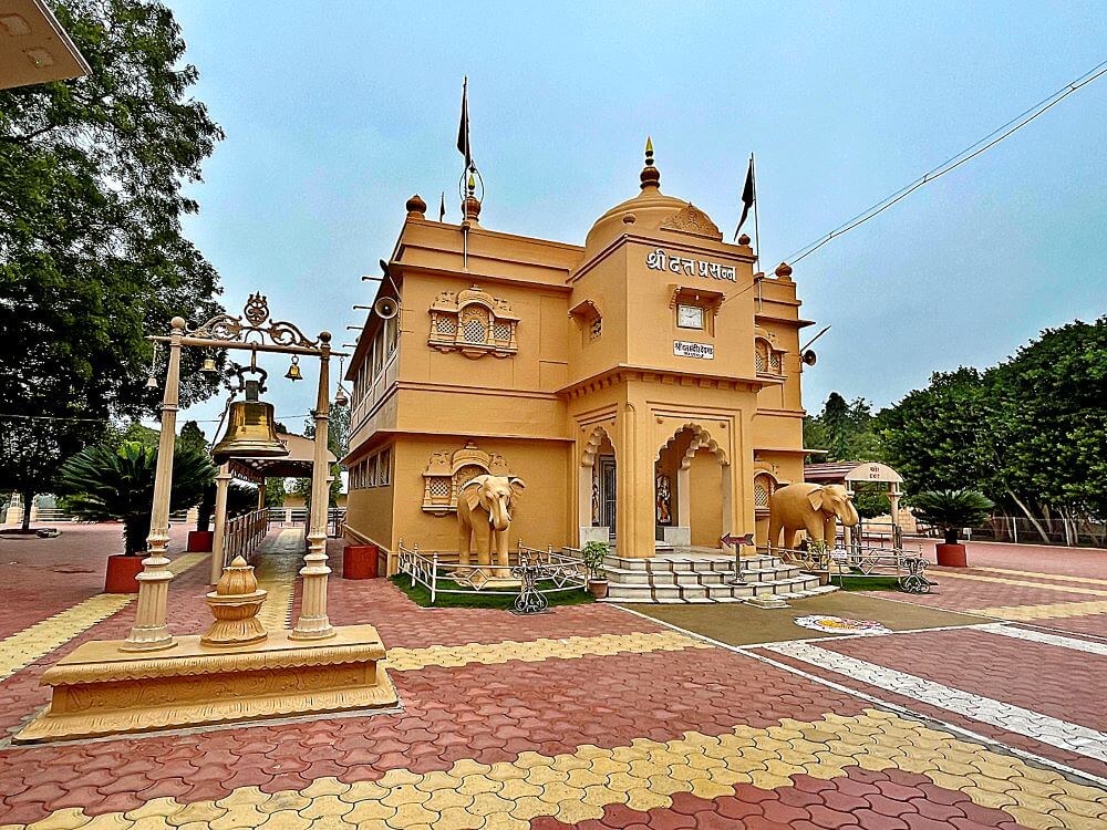 नेवासेहून मुरमे गावाकडे जाताना देवगड फाटा लागतो. तेथे श्री दत्त संस्थानचे पहिले भव्य प्रवेशद्वार आहे. तेथून सुमारे ५ किमी अंतरावर दुसरे व मुख्य प्रवेशद्वार आहे. राजस्थानी पद्धतीच्या वास्तुकलेची, तसेच दाक्षिणात्य गोपुरांची आठवण करून देणाऱ्या या प्रवेशद्वाराच्या उंच, रुंद कमानीखालून देवस्थान परिसरात प्रवेश होतो. या मार्गाच्या दुतर्फा तसेच मध्यभागी, विविधरंगी झाडे लावण्यात आली आहेत. खास निगा ठेवलेली वृक्षराजी, हे या परिसराचे एक वैशिष्ट्य आहे. प्रवेशद्वारासमोर प्रवरा नदीच्या तीरावर, श्रीदत्तांचे सुंदर मंदिर आहे. ते दुमजली असून मंदिराच्या शिखरावर चार फूट उंचीचा सोन्याचा कळस आहे. मंदिराच्या मुख्य प्रवेशद्वाराच्या दोन्ही बाजूला गजराजांच्या उंच आणि सुबक मूर्ती आहेत. मंदिराचे बांधकाम राजस्थानी शैलीशी मिळते जुळते असून येथील सर्व वास्तूंवर याच शैलीचा प्रभाव दिसतो. मंदिराच्या गाभाऱ्यात श्रीदत्तप्रभूंच्या संगमरवरी पाषाणात साकारलेल्या मूर्तीची प्राणप्रतिष्ठा केलेली आहे.