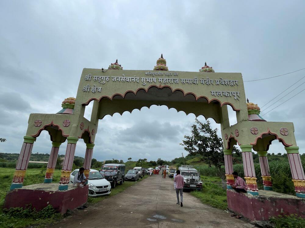 मलकापूर गावापासून काही अंतरावर असलेल्या या देवस्थानाकडे जाणाऱ्या रस्त्यावर मंदिराची पहिली स्वागतकमान आहे. कमानीपासून सुमारे एक किमी अंतरावर असलेल्या देवस्थानापर्यंत पक्की सडक आहे.