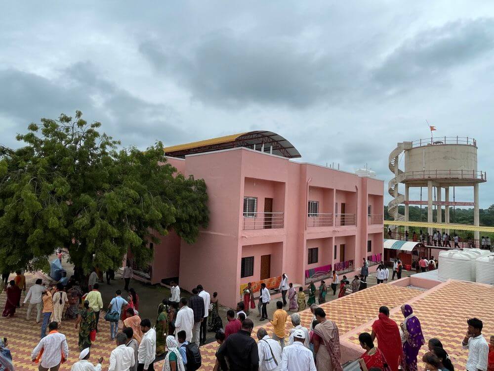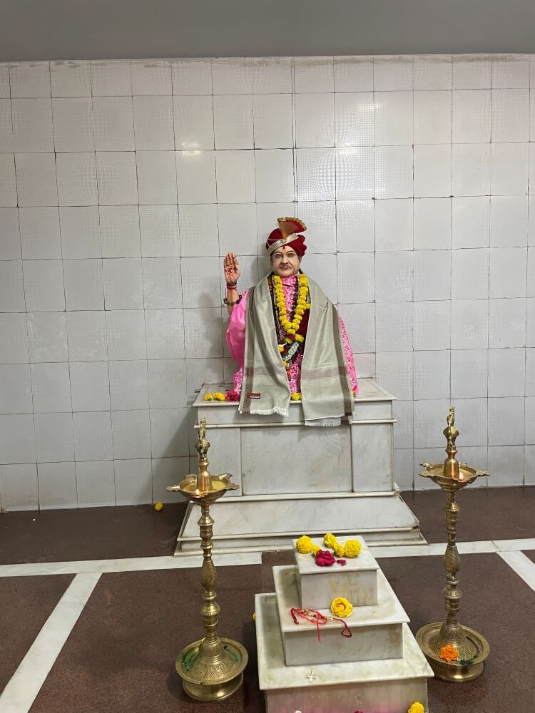 मंदिरासभोवती असलेल्या तीन फूट उंचीच्या आवारभिंतीत प्रवेशद्वार आहे. मंदिराच्या पेव्हर ब्लॉक आच्छादित प्रशस्त प्रांगणात भाविकांना बसण्यासाठी आसने आहेत. प्रांगणात एक मोठे कीर्तन व प्रवचन सभागृह आहे. खुल्या स्वरूपाच्या या सभागृहात समोरील बाजूला व्यासपीठ व व्यासपिठाच्या दोन्ही बाजूला दोन कक्ष आहेत. येथून पुढे टप्याटप्याने वर जाणाऱ्या सुमारे वीस फूट लांबीच्या पायऱ्या आहेत. त्यापुढे सुभाष महाराज यांचे समाधी मंदिर आहे.