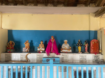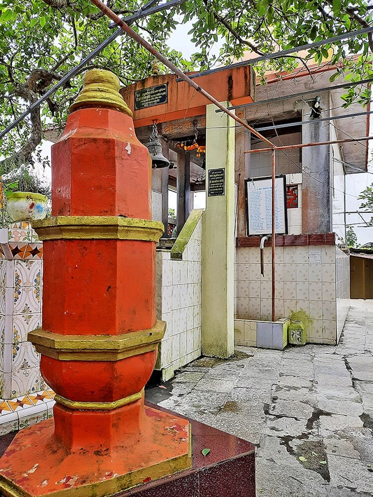 काही पायऱ्या चढून आल्यानंतर उजव्या हाताला एक भग्नावस्थेतील दीपमाळ आहे. असे सांगितले जाते की सर्वांत पहिल्यांदा मंदिराबरोबर स्वामी ब्रह्मेंद्र यांनी ही दीपमाळ बांधली होती. येथेच डाव्या हाताला बुरांडे महाराजांची समाधी आहे. समाधीच्या बाजुला छोटे दत्तमंदिर आहे. यात मध्यभागी दत्तगुरूंची मूर्ती, उजवीकडे गणपतीची मूर्ती आणि डावीकडे शिवलिंगाचे दर्शन होते. आणखी काही पायऱ्या चढून आल्यानंतर हरेराम बाबा मठ, हरे राम धुनी मंदिर आणि साईबाबा मंदिर आहे. त्याच्या बाजुला मुख्य दत्तमंदिराची कमान आणि कमानीच्या बाजुला दीपस्तंभ आहे. येथून मंदिराचा घुमटाकार कळस दिसतो. बाजुलाच दत्तमंदिरात येण्यासाठी तिसरा रस्ता आहे. उत्तर दिशेला असलेल्या हिंगुलजा देवी मंदिराकडून पायवाटेने येथे येता येते. पायवाटेच्या दरीकडील बाजुला लोखंडाचे कठडे (रेलिंग) आहेत.