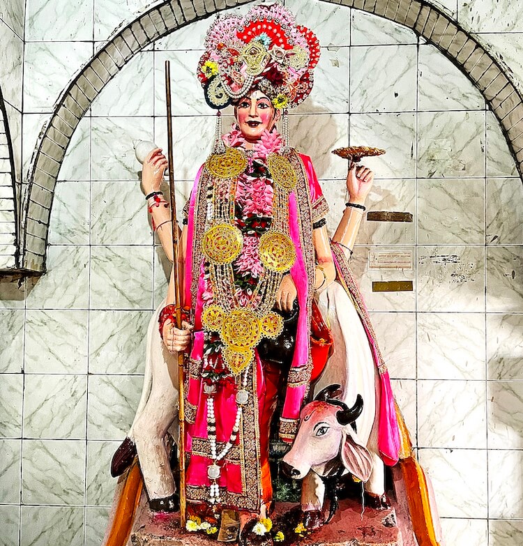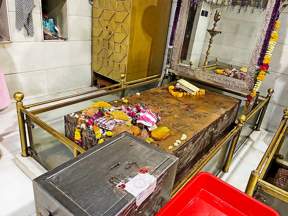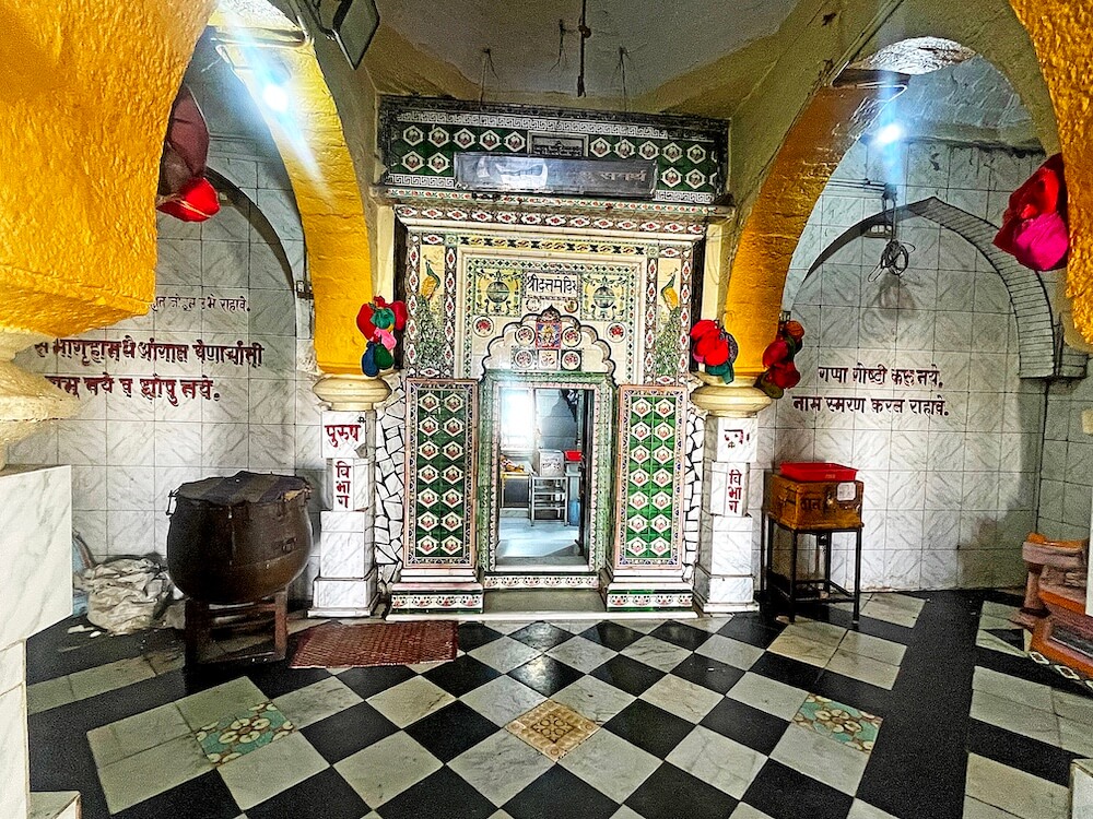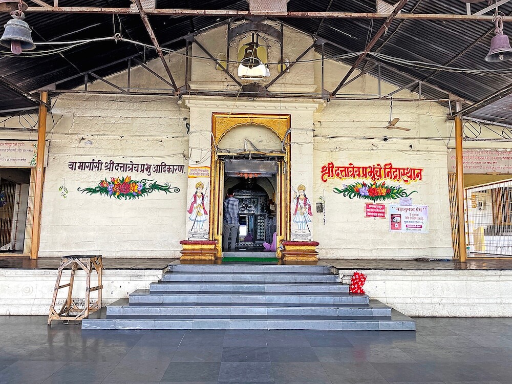 पुढे गर्भगृहाचे प्रवेशद्वार आहे. द्वारशाखांवर पानाफुलांची नक्षी व प्रवेशद्वाराच्या वर मयूर व इतर आकृत्या रेखाटलेल्या आहेत. गर्भगृहात दोन स्वतंत्र वज्रपीठावर एकमुखी श्रीदत्तात्रेय व महानुभाव पंथाचे गुरु चांगदेव राऊळ यांच्या पाषाणमूर्ती आहेत. दोन्ही मूर्तींना चांदीचे मुखवटे व मुकूट आहेत. मूर्तींच्या मागे चांदीच्या प्रभावळी आहेत. रोज सांजारतीनंतर देवांच्या शय्या सजविल्या जातात. देव रोज रात्री निद्रा घेण्यासाठी या ठिकाणी येतात, अशी श्रद्धा आहे. गर्भगृहाच्या मागील बाजूने बाहेर पडण्यासाठी दरवाजा आहे. गर्भगृहाच्या छतावर निमुळते होत गेलेले चौकोनी शिखर आहे.